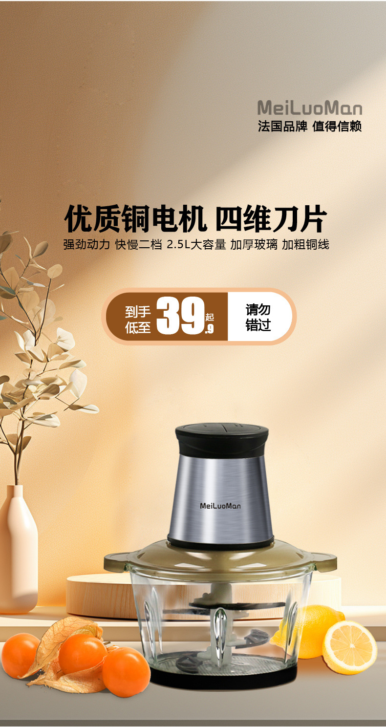 가정용 전기 고기 분쇄기 2L 자동 다기능 스테인리스 고기 분쇄기 주방 가전 요리기스토어 가기