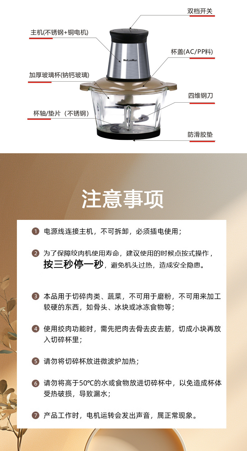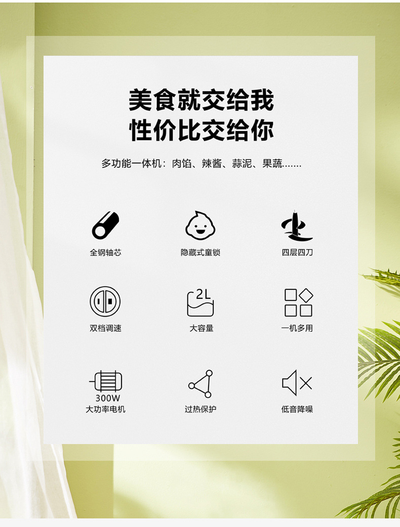 가정용 전기 고기 분쇄기 2L 자동 다기능 스테인리스 고기 분쇄기 주방 가전 요리기