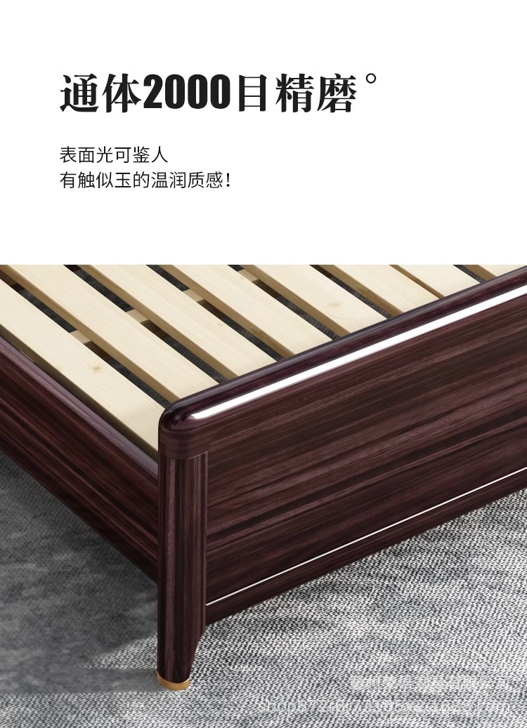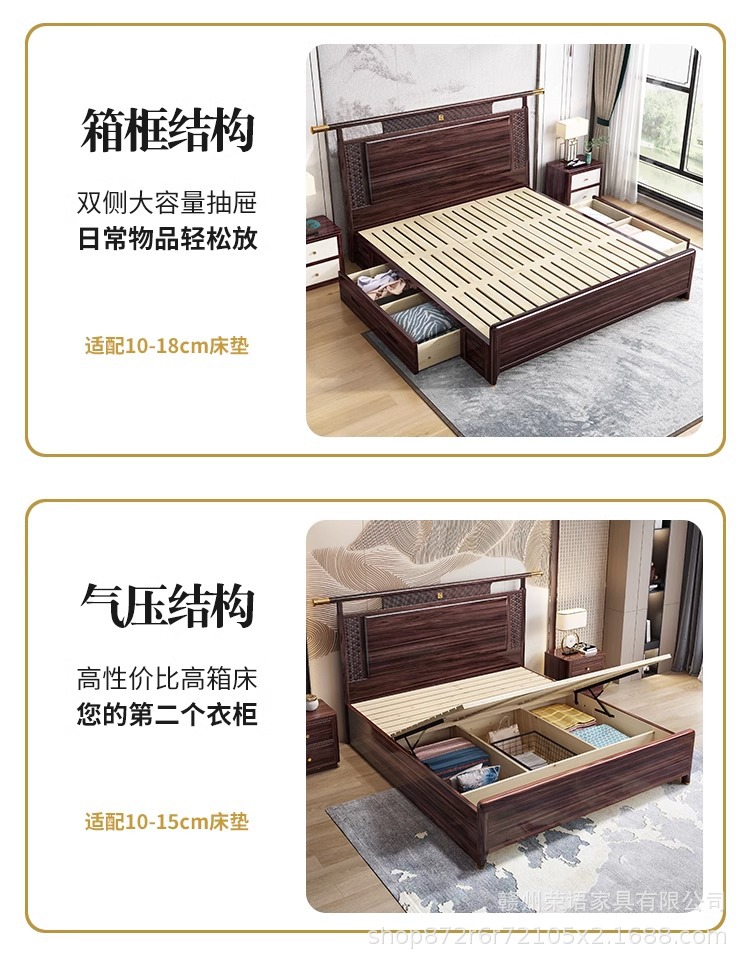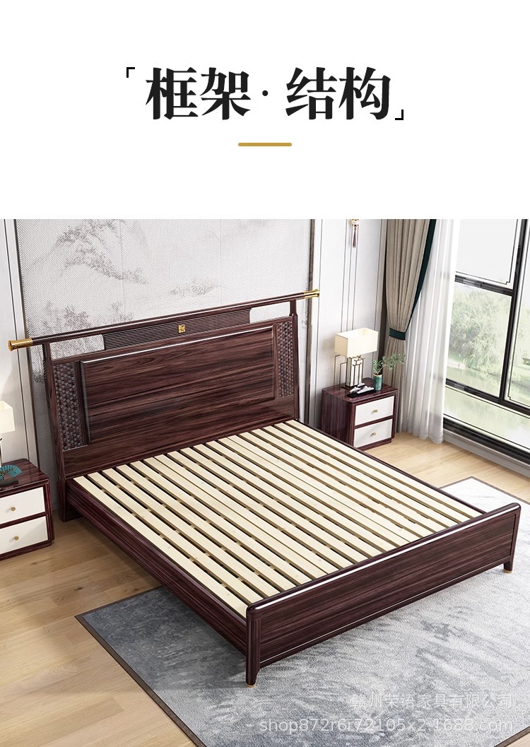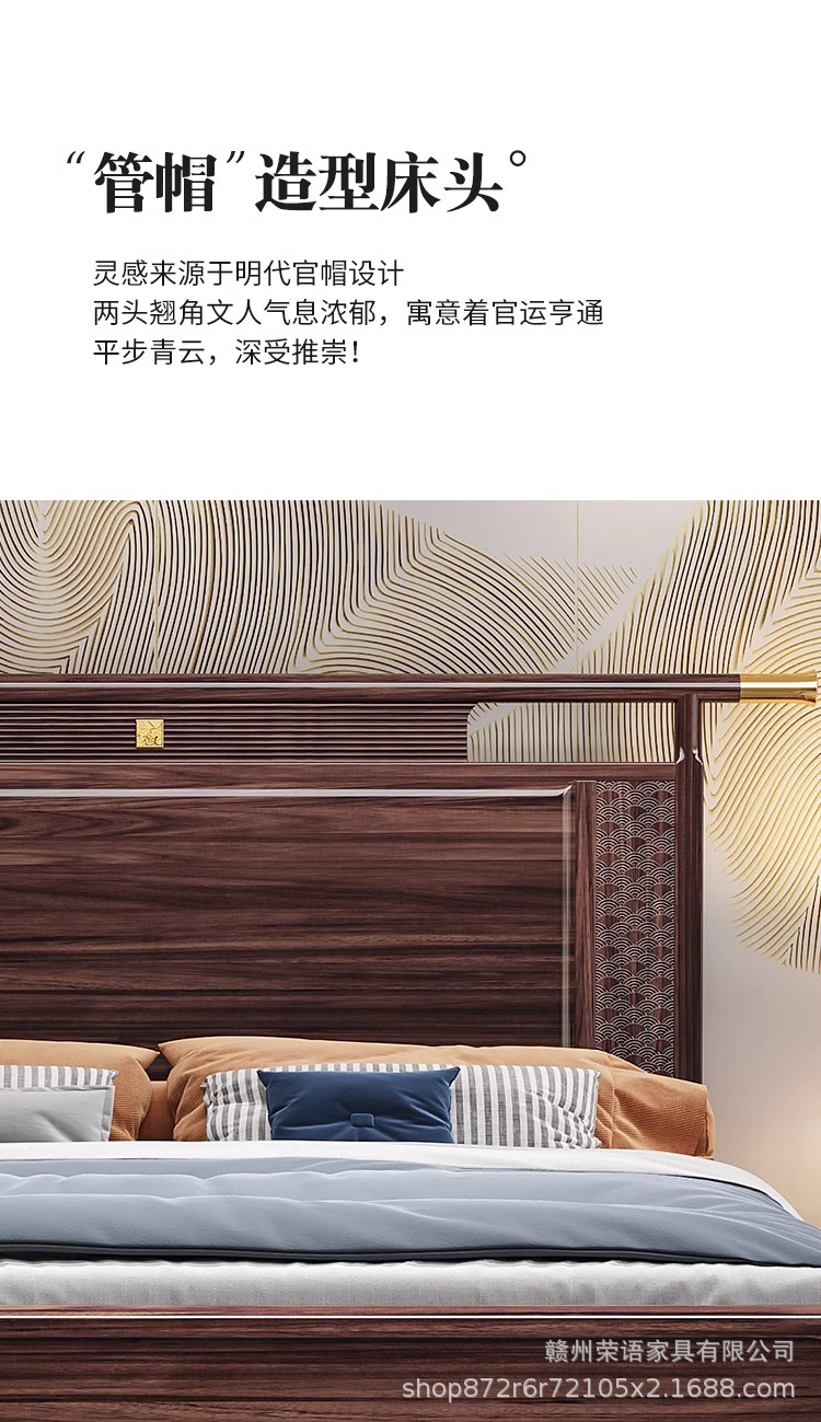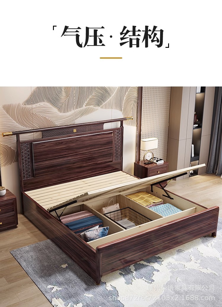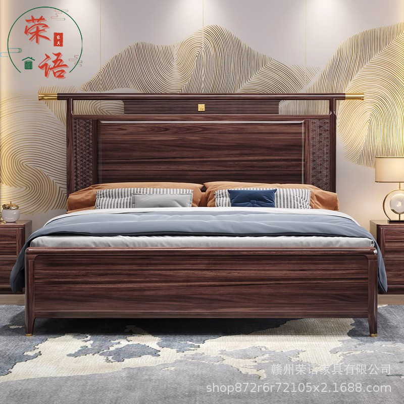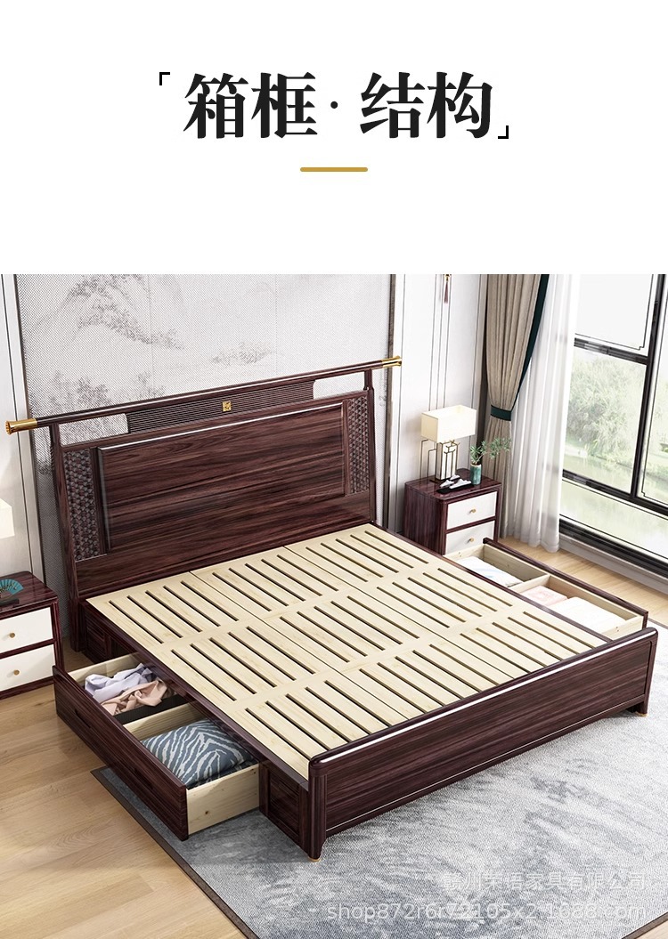 새로운 중국 스타일 Wujin 단단한 나무 침대 1.5 현대 간단한 마스터 침실 공식 모자 더블 퀸 침대 1.8 m 저장 침실 웨딩 침대