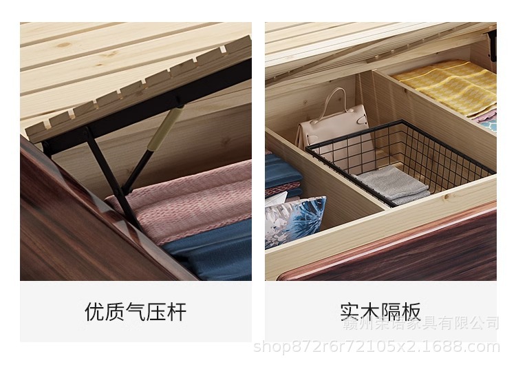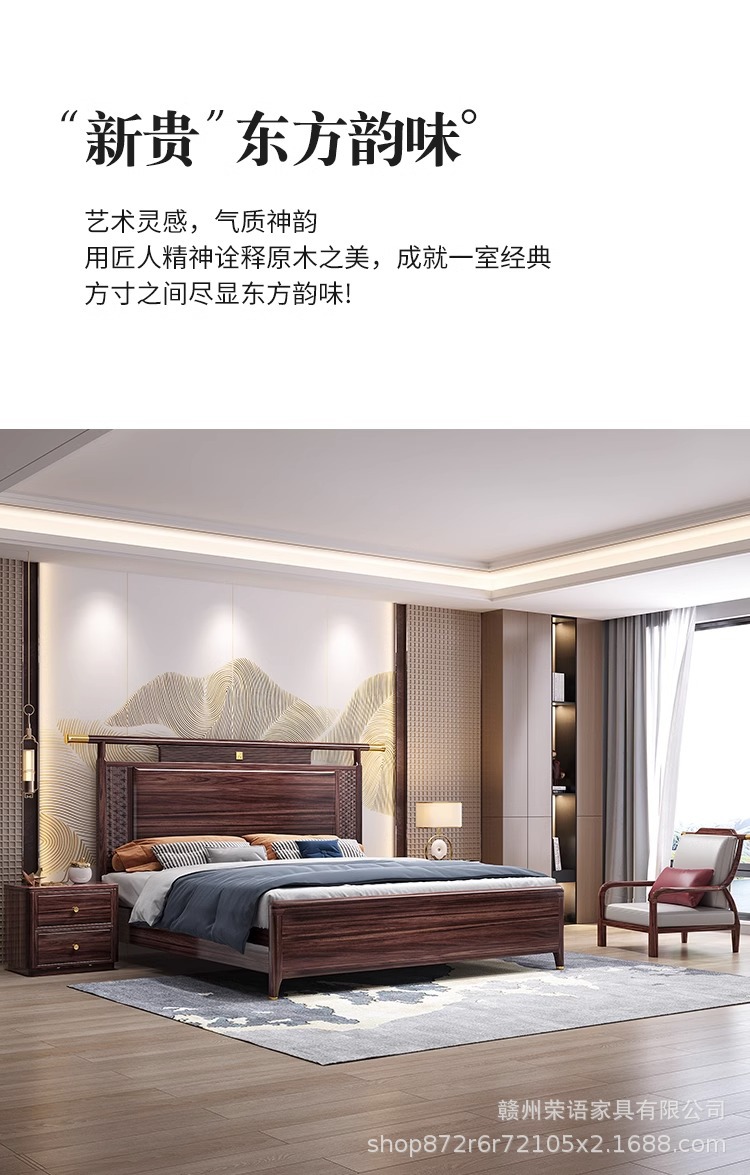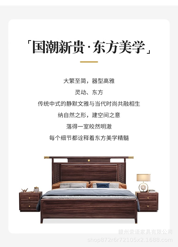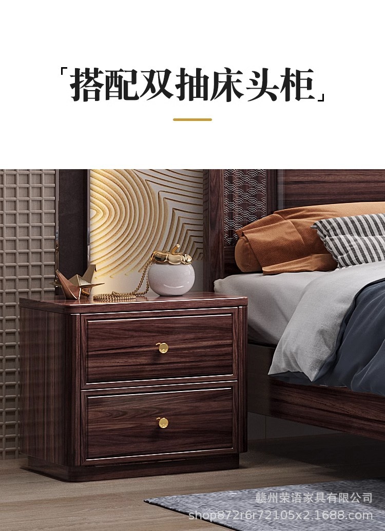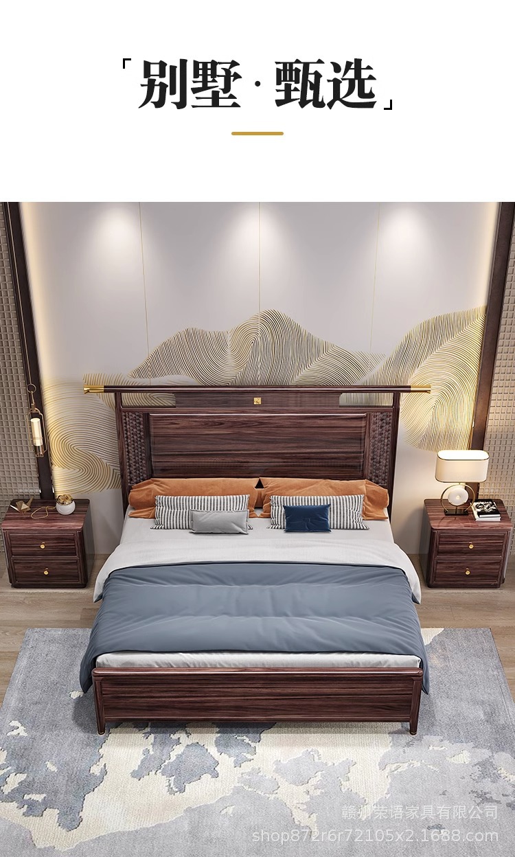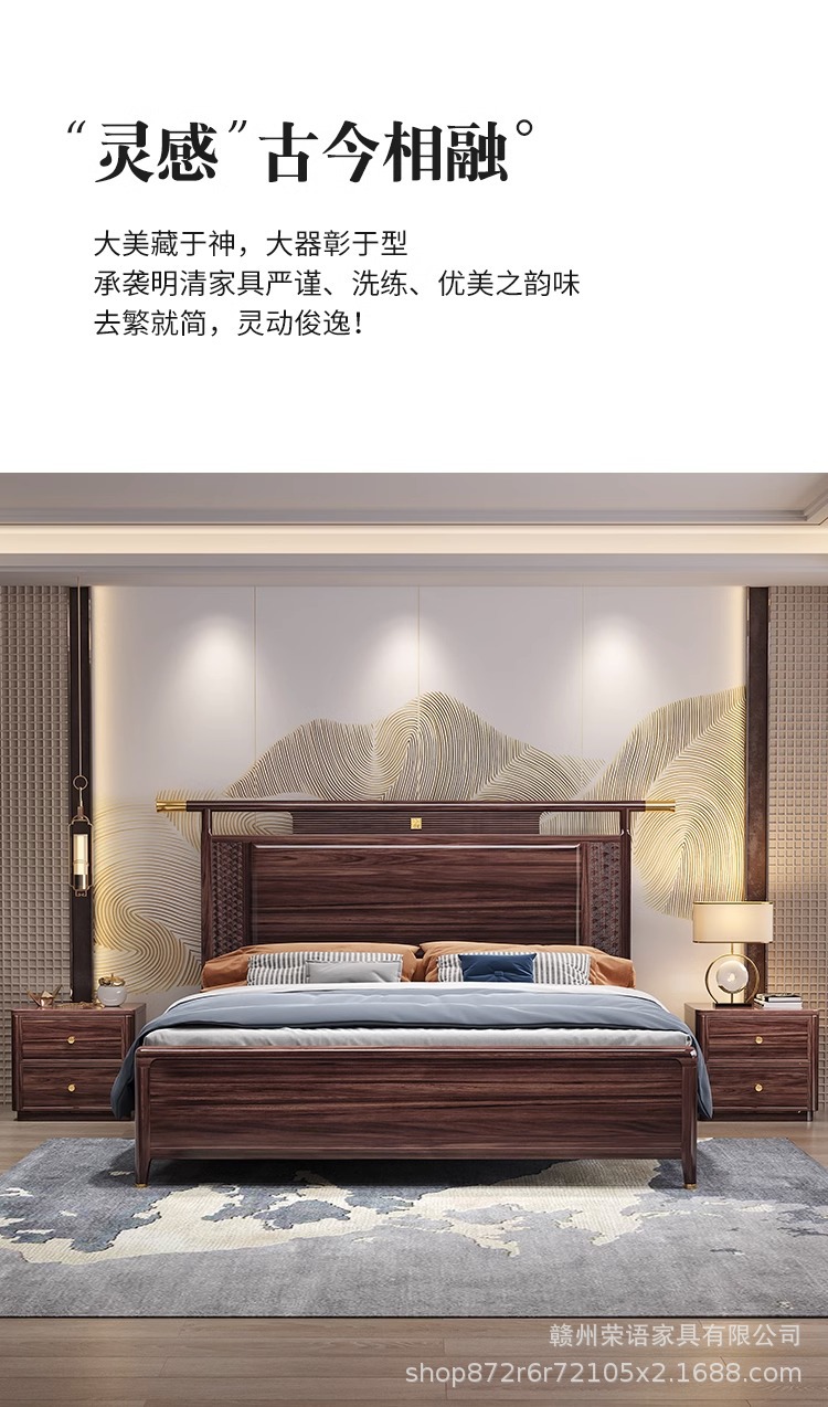 새로운 중국 스타일 Wujin 단단한 나무 침대 1.5 현대 간단한 마스터 침실 공식 모자 더블 퀸 침대 1.8 m 저장 침실 웨딩 침대