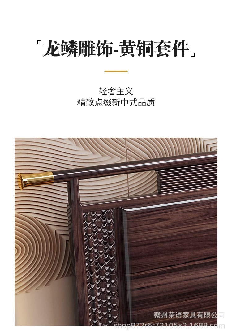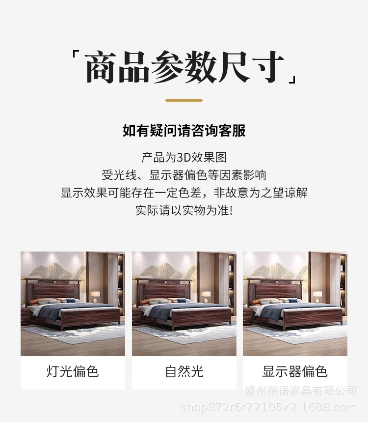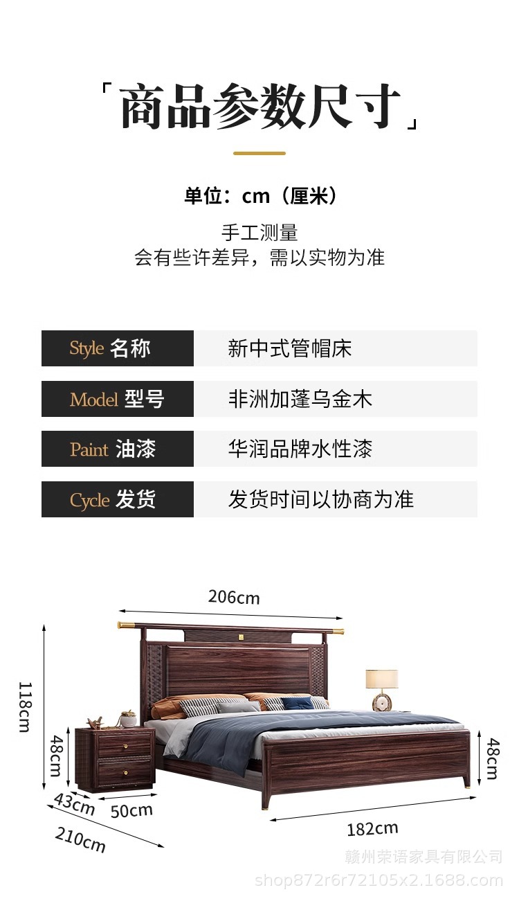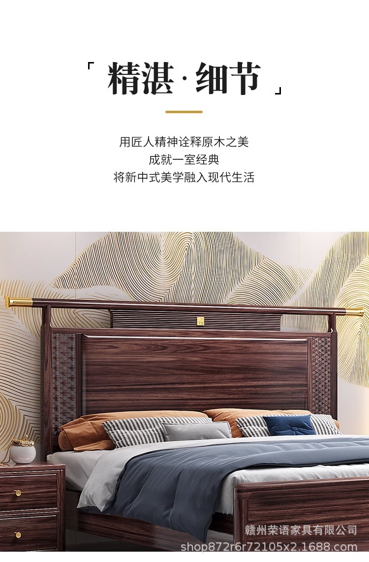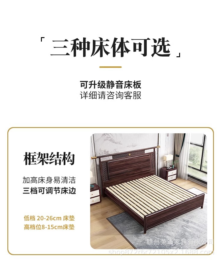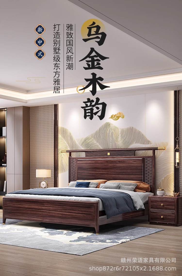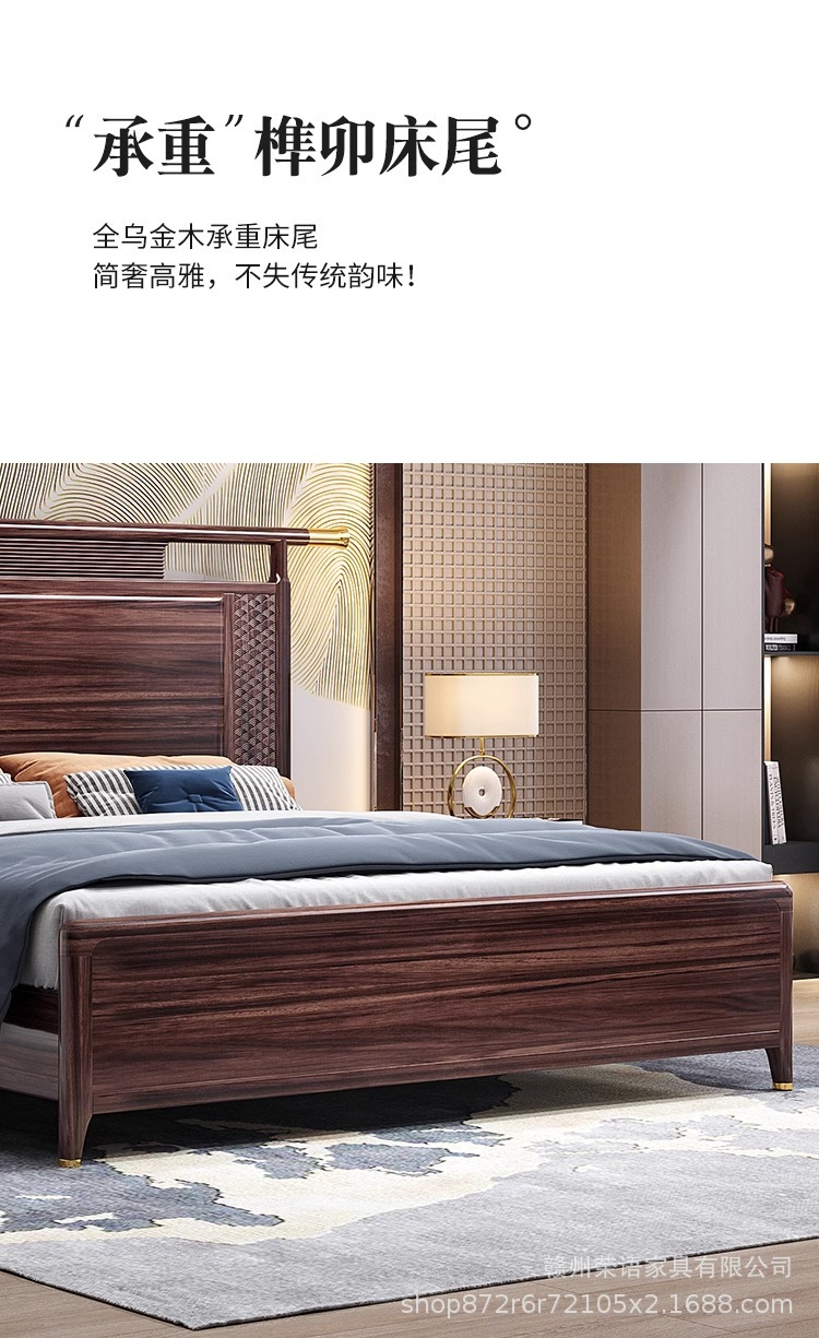 새로운 중국 스타일 Wujin 단단한 나무 침대 1.5 현대 간단한 마스터 침실 공식 모자 더블 퀸 침대 1.8 m 저장 침실 웨딩 침대스토어 가기