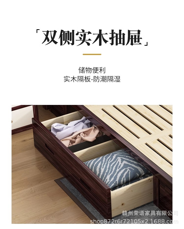 • 흑단 컬러 침대 + 침대 옆 탁자 1 개 + 20cm 스프링 다크 브라운 패드