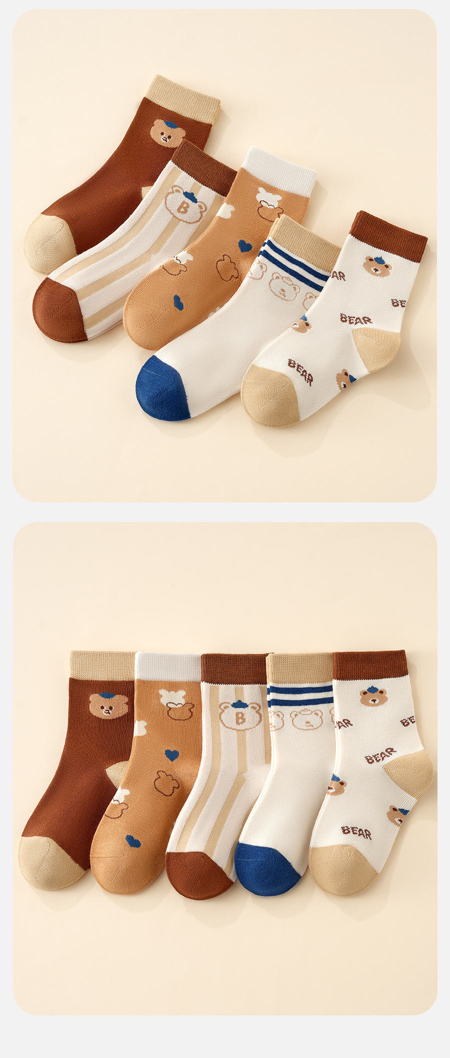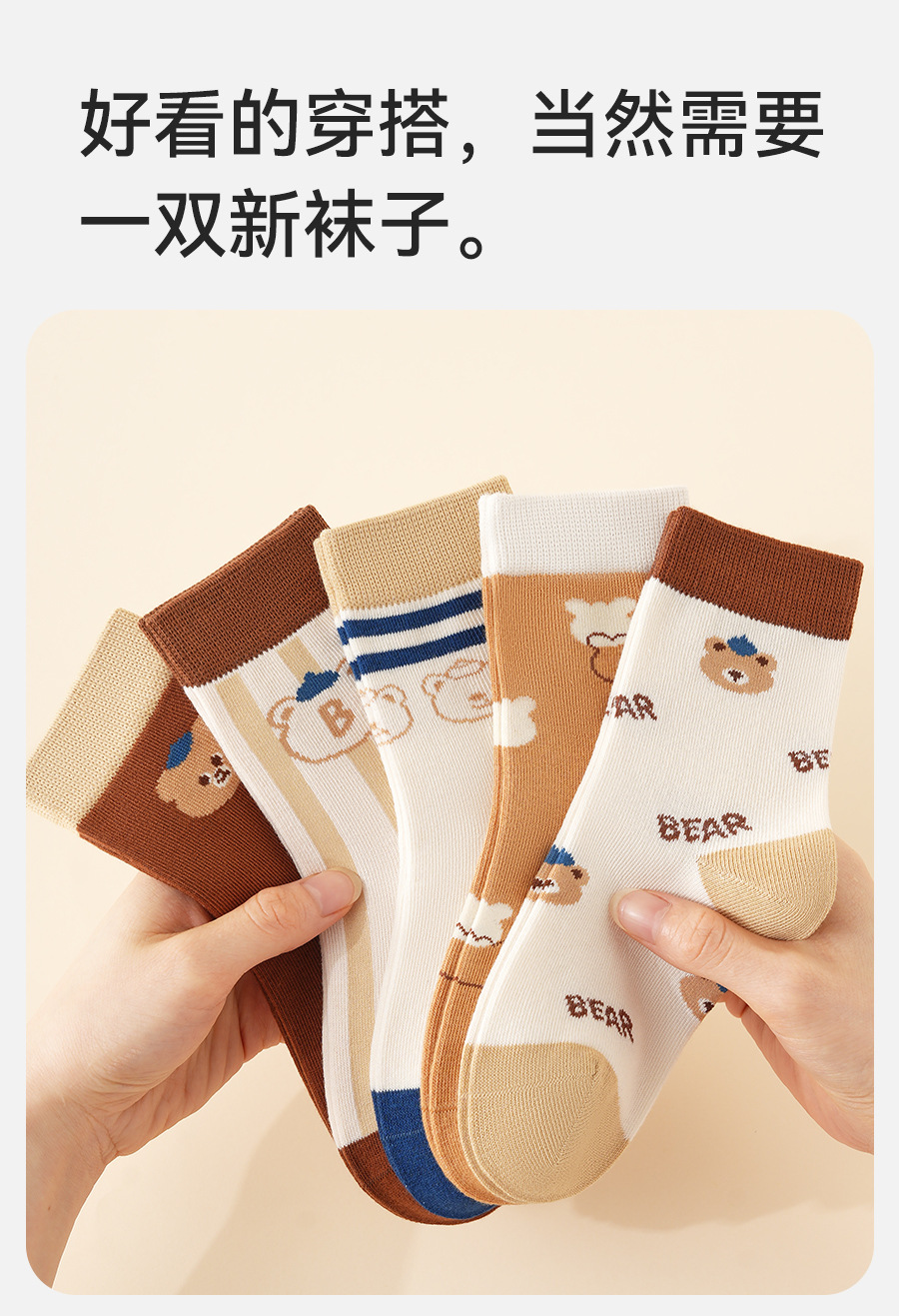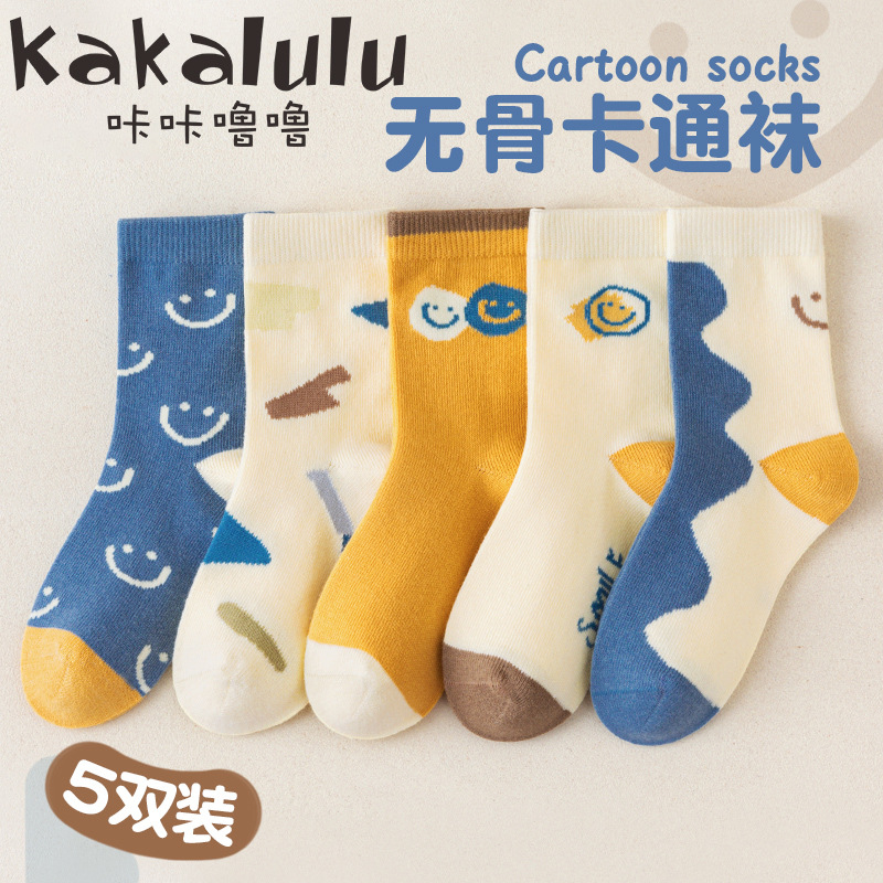 • TY21 - 어린아이 같은 웃는 얼굴 - 가을 트렌디한 순면 뼈대 없는 5켤레