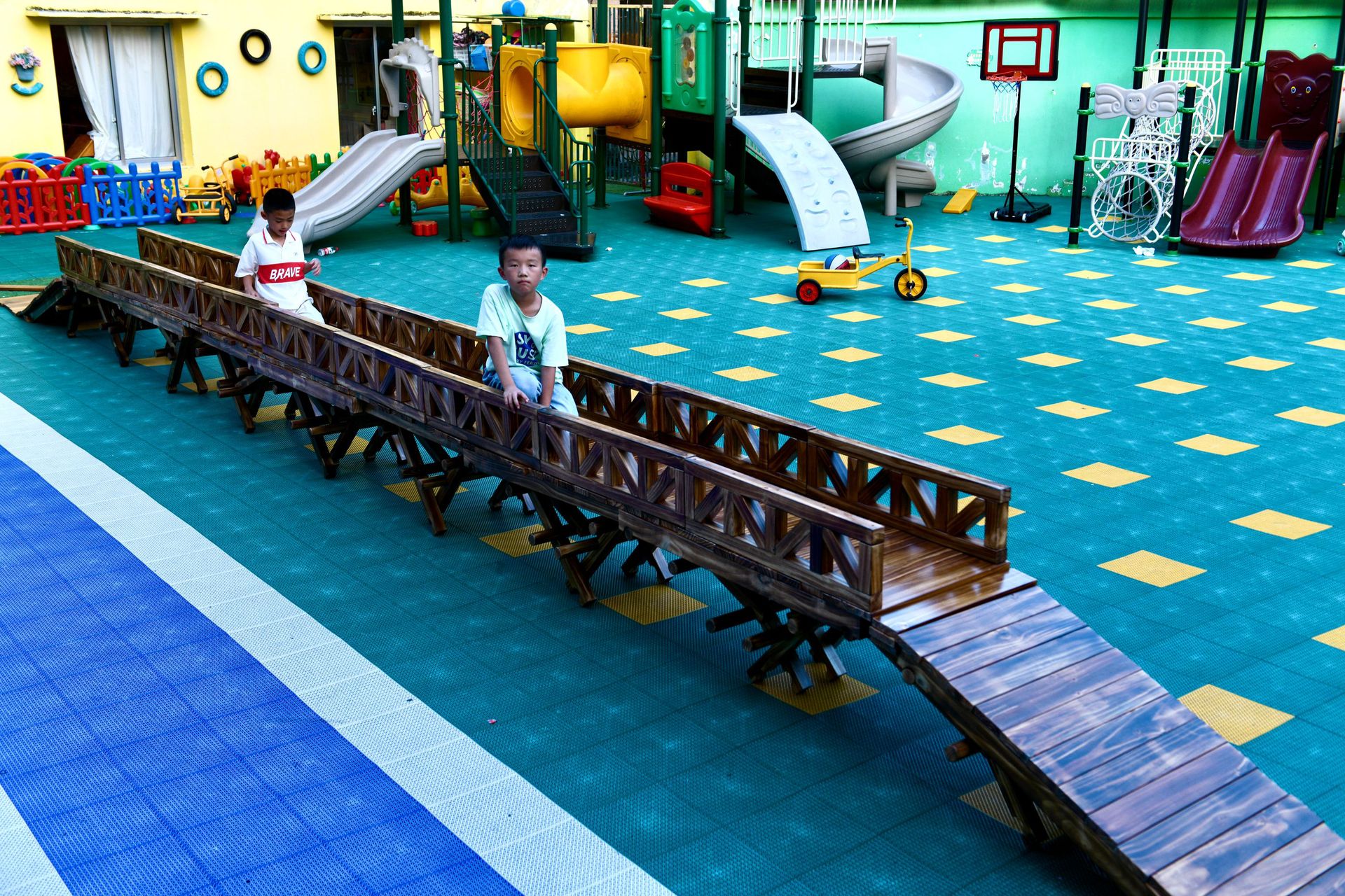 유치원 야외 크로스 바다 다리 탄소 연소 탄산 빌딩 블록 건설 지역 단단한 나무 두꺼운 퍼즐 안지 게임