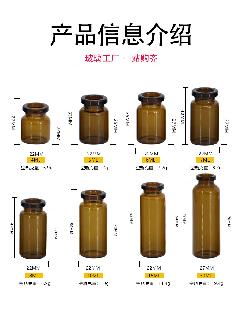 • 22*40 (7ml); 갈색 병 + 부틸 마개 + 알루미늄 플라스틱 캡; 유리