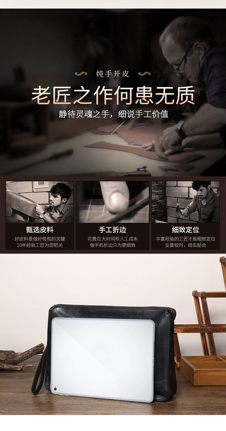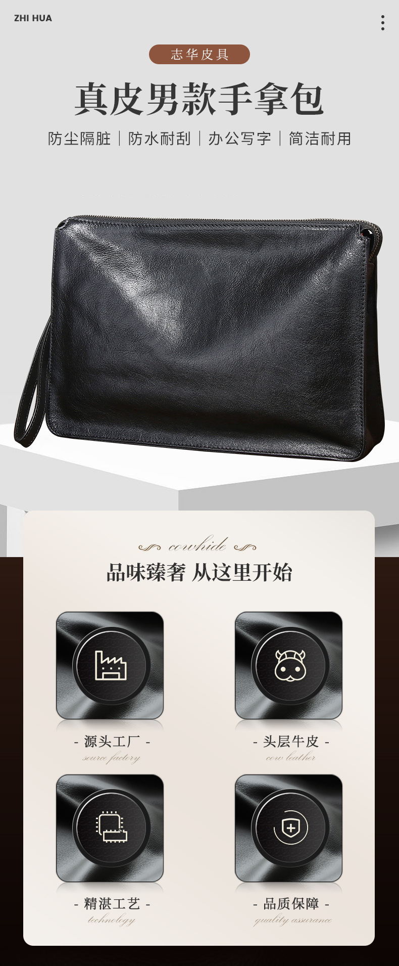 정품 가죽 남성 클러치 백 첫 번째 레이어 소 가죽 비즈니스 럭셔리 클러치 백 휴대용 새 클러치 백 9120스토어 가기