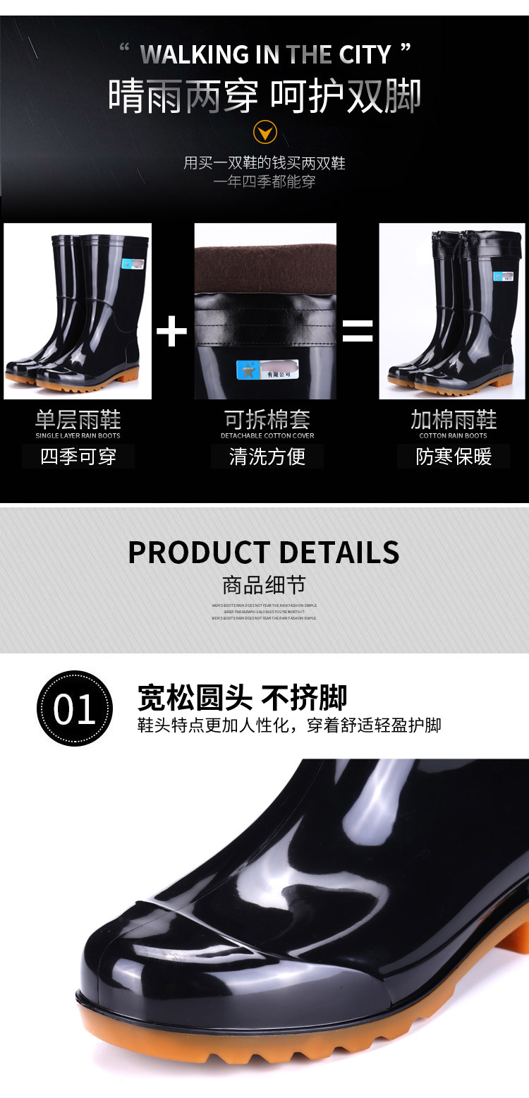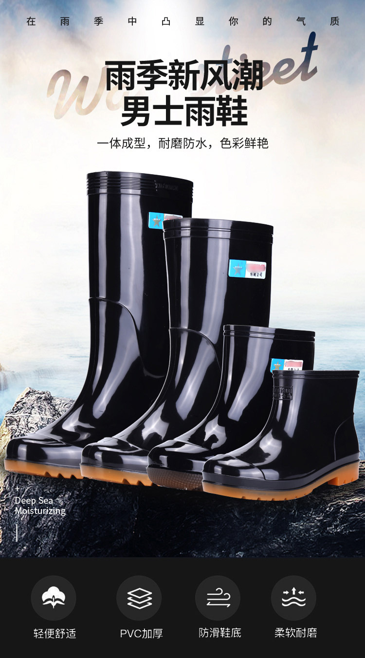 노동 보호 비 신발 남자의 물 신발 방수 미끄럼 방지 장화 높은 물 장화 고무 신발 신발 두꺼운 도매 쇠고기 바닥스토어 가기