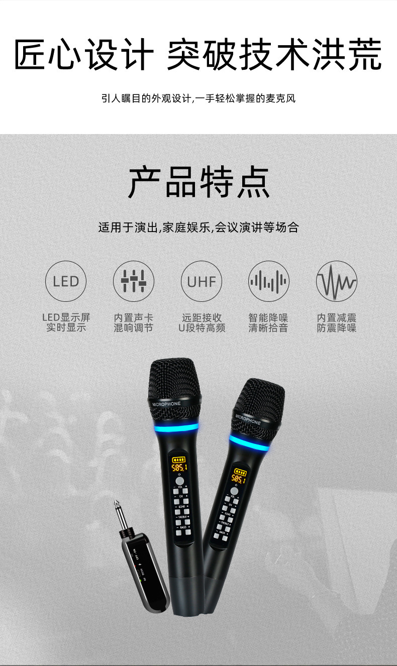 공장 세대의 홈 스테이지 성능 사운드 카드 k 전문 잔향 무선 마이크 충전 마이크 노래