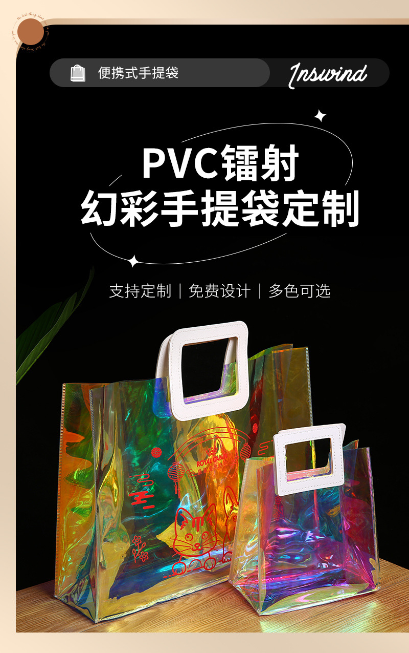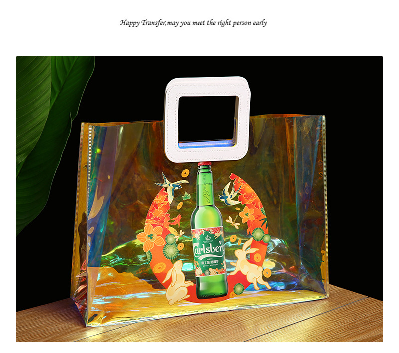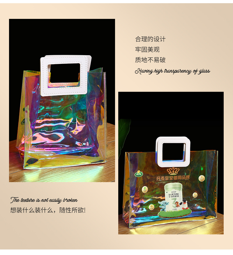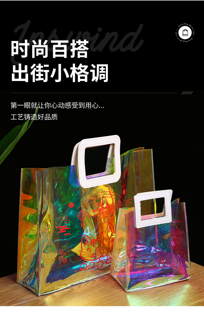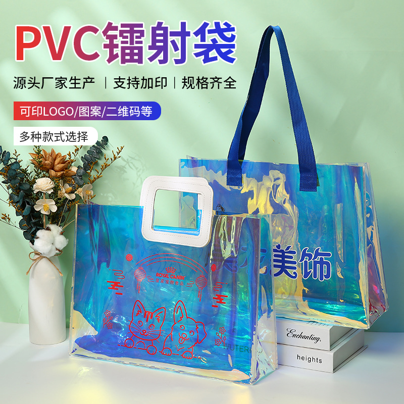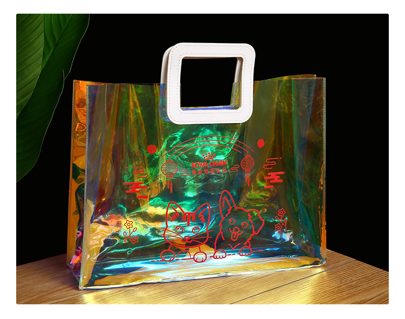 PVC 가죽 레이저백 핸드백 숄더백 대용량 젤리백 두꺼운 쇼핑백 선물 포장 맞춤형 휴대용