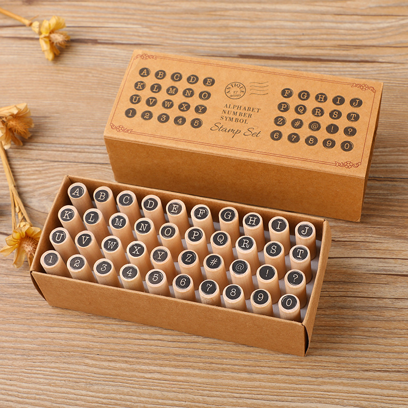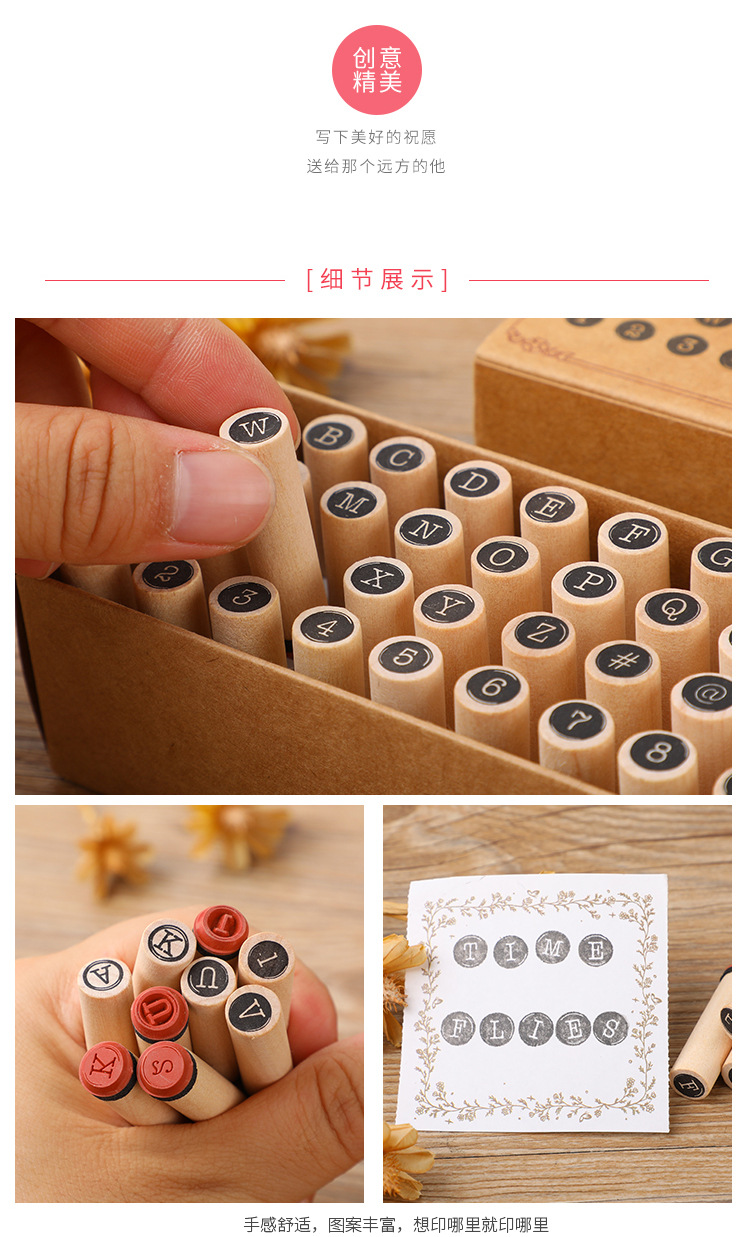 창조적 인 나무 편지 원통형 씰 DIY 손 계정 일기 장식 영어 시리즈 우표 2 선택 40스토어 가기