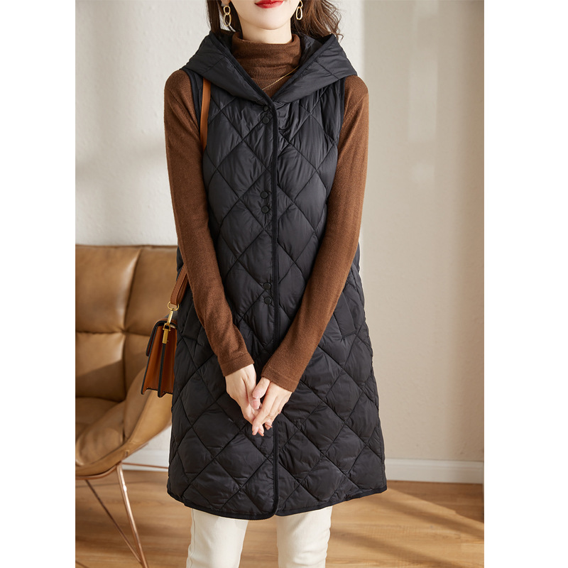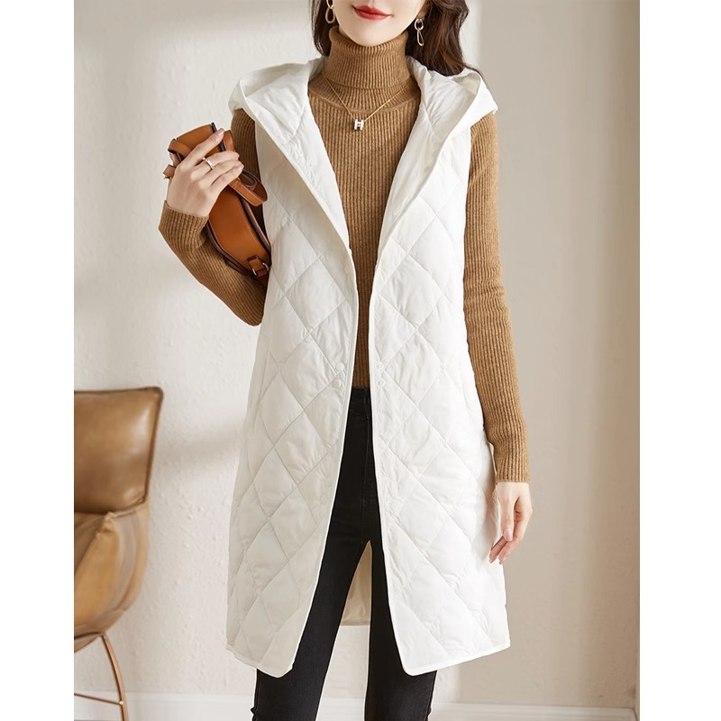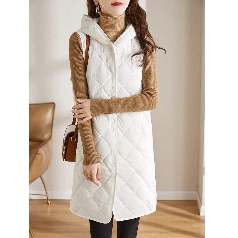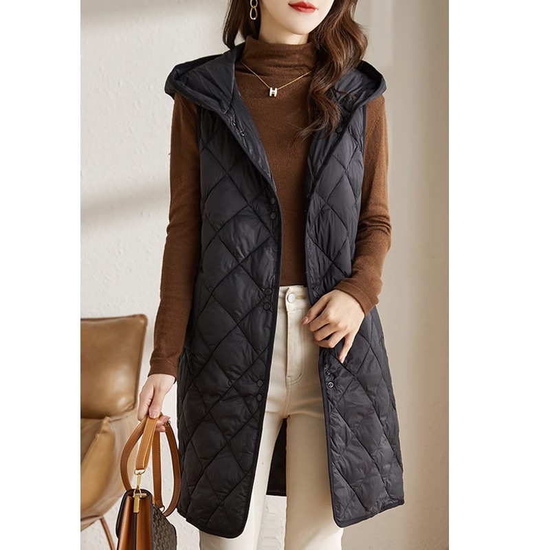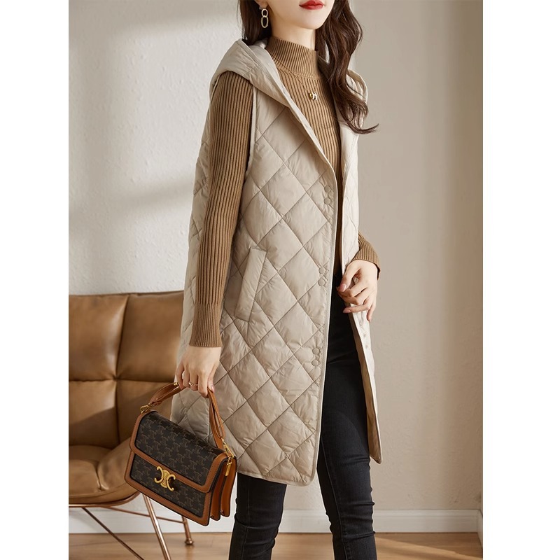 2024 가을 겨울 신상 루즈핏 슬림 후드 조끼 중간 길이 코트 여성용스토어 가기