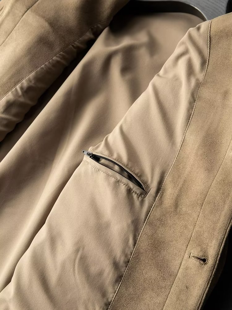 스웨이드 재킷 남자의 봄과 가을 영국 스타일 복고풍 샌딩 탄성 툴링 남자의 옷깃 다운 캐주얼 재킷스토어 가기
