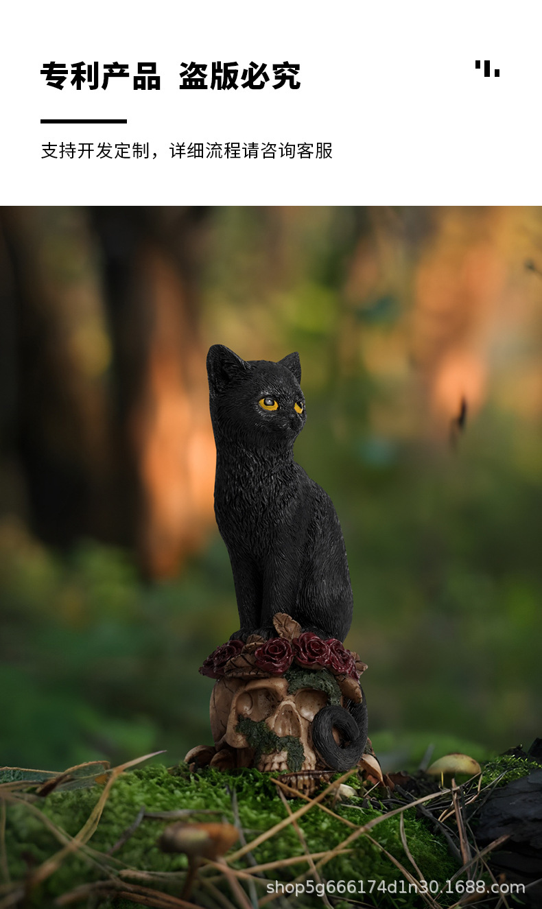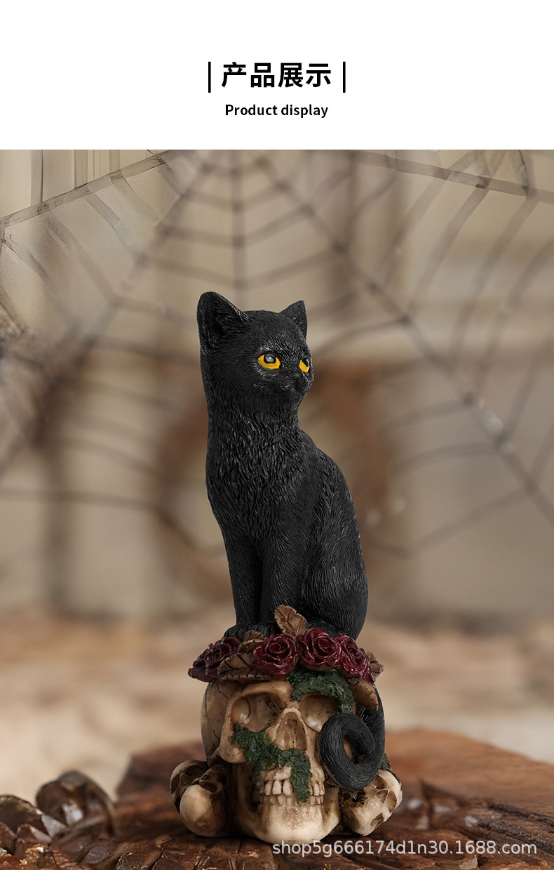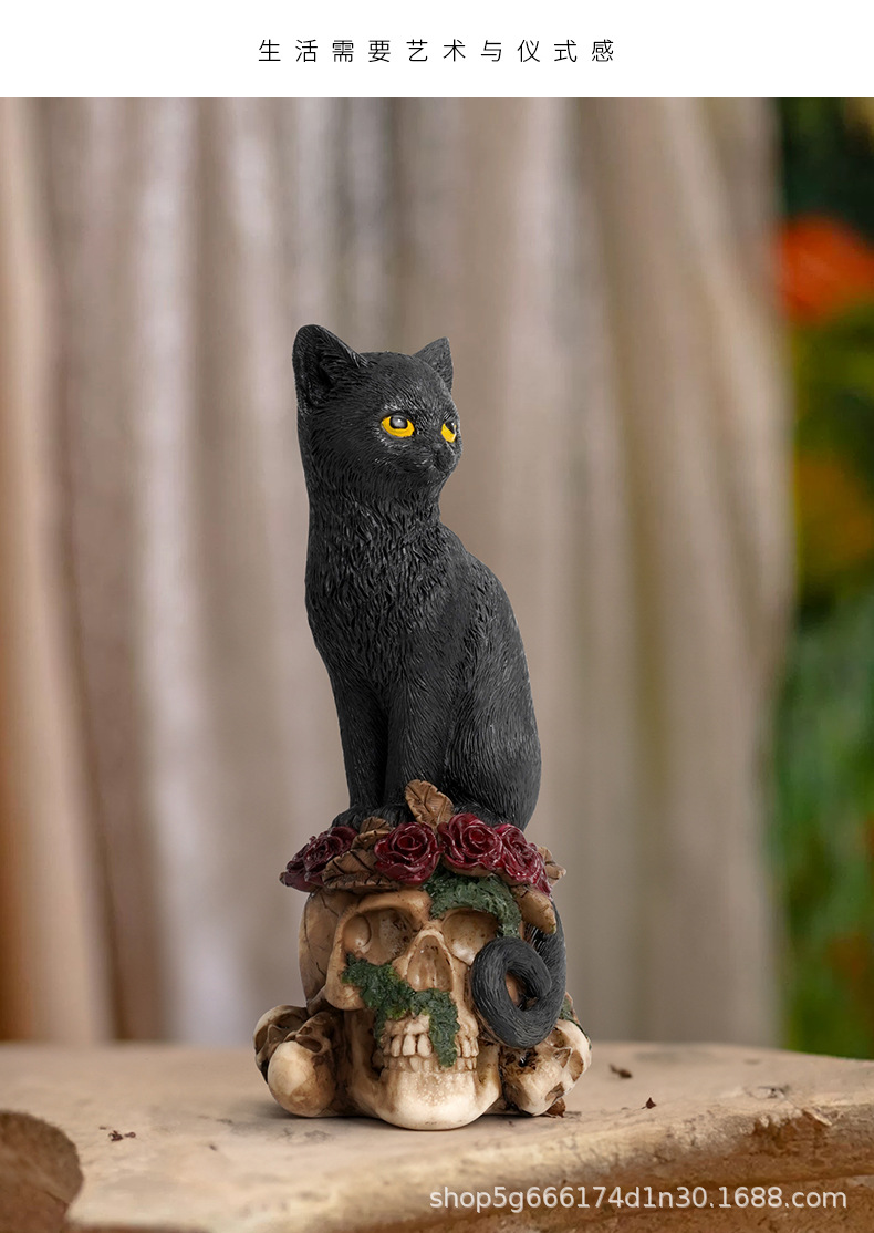 국경 간 뜨거운 판매 신비한 동물 수지 동상 검은 고양이 까마귀 해골 장식품 홈 데스크탑 입구 연구 장식스토어 가기