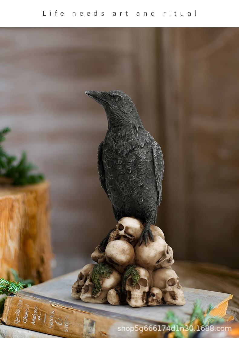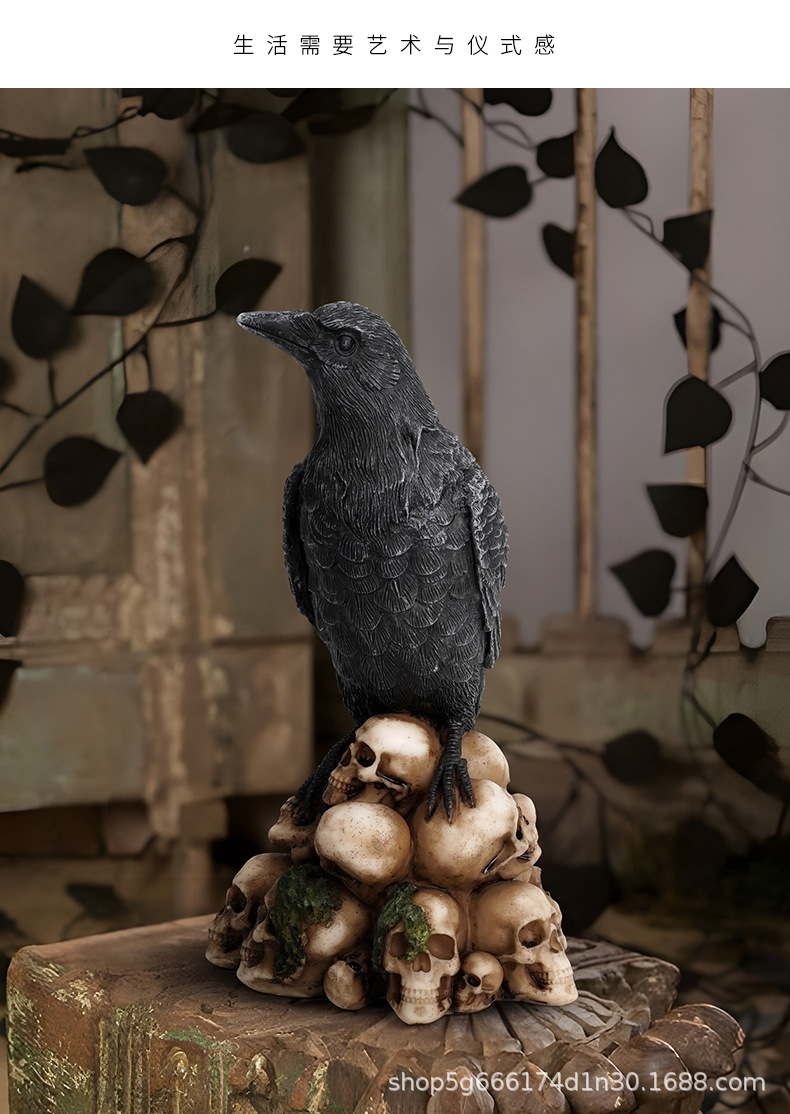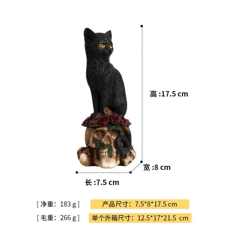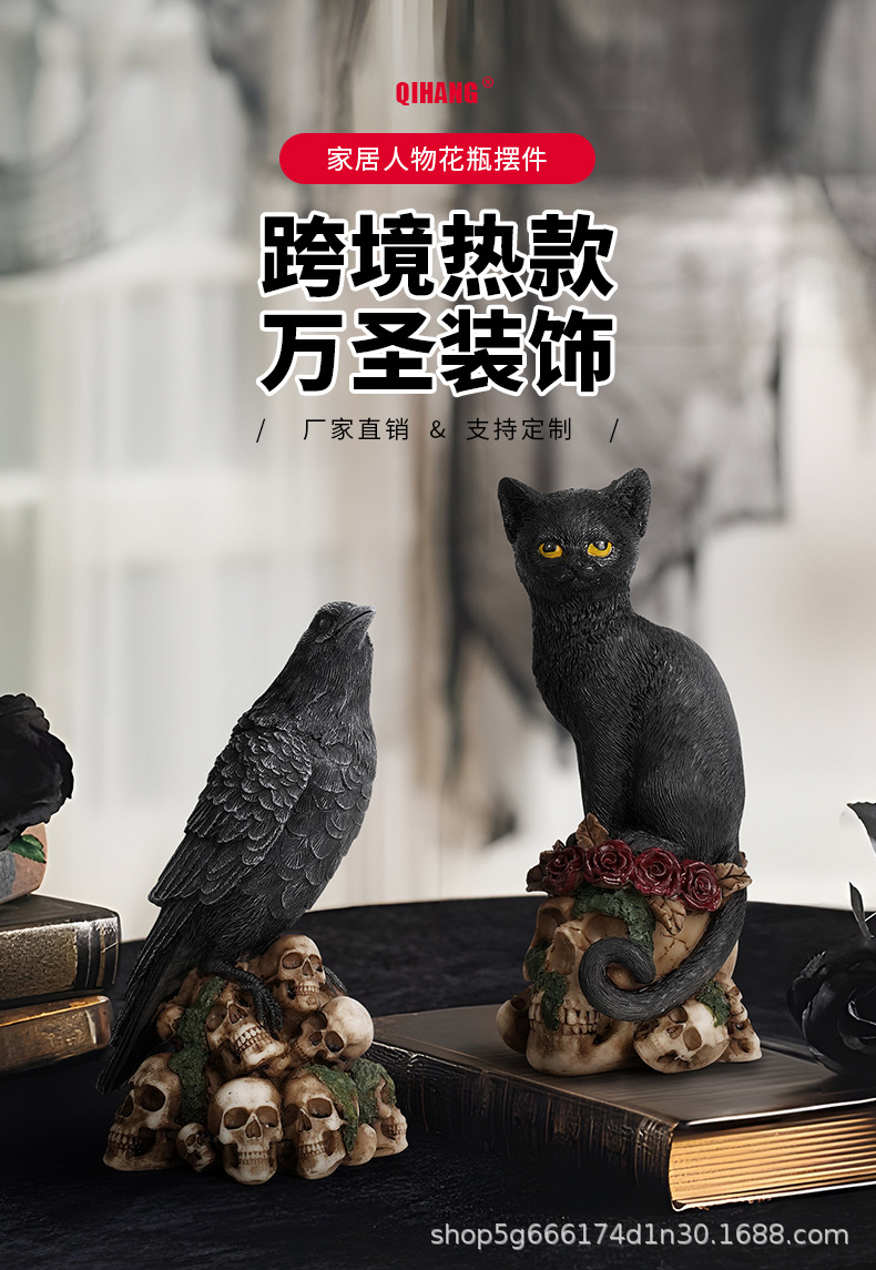 국경 간 뜨거운 판매 신비한 동물 수지 동상 검은 고양이 까마귀 해골 장식품 홈 데스크탑 입구 연구 장식스토어 가기