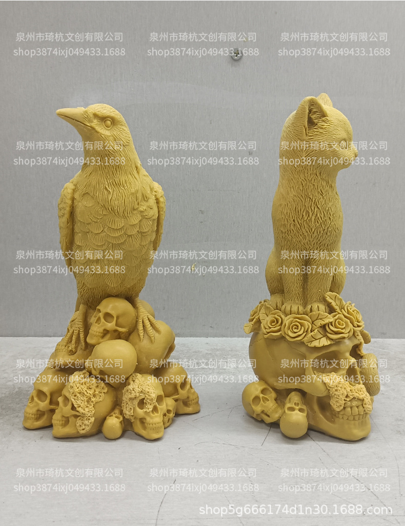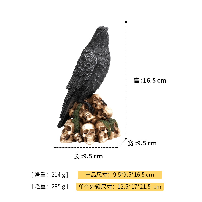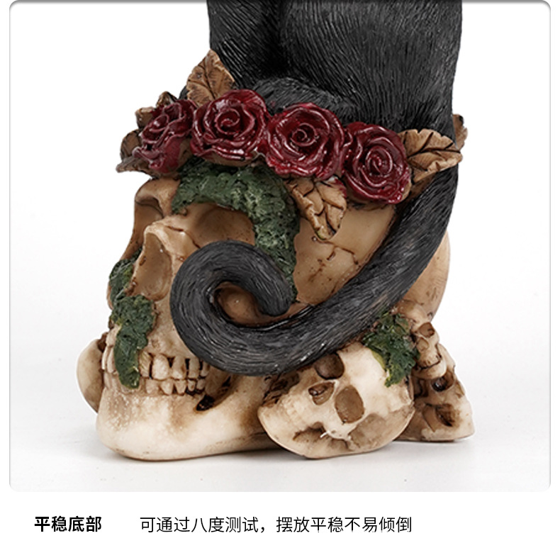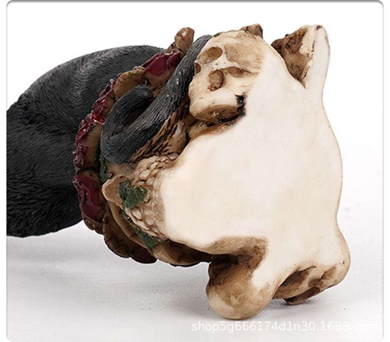 국경 간 뜨거운 판매 신비한 동물 수지 동상 검은 고양이 까마귀 해골 장식품 홈 데스크탑 입구 연구 장식