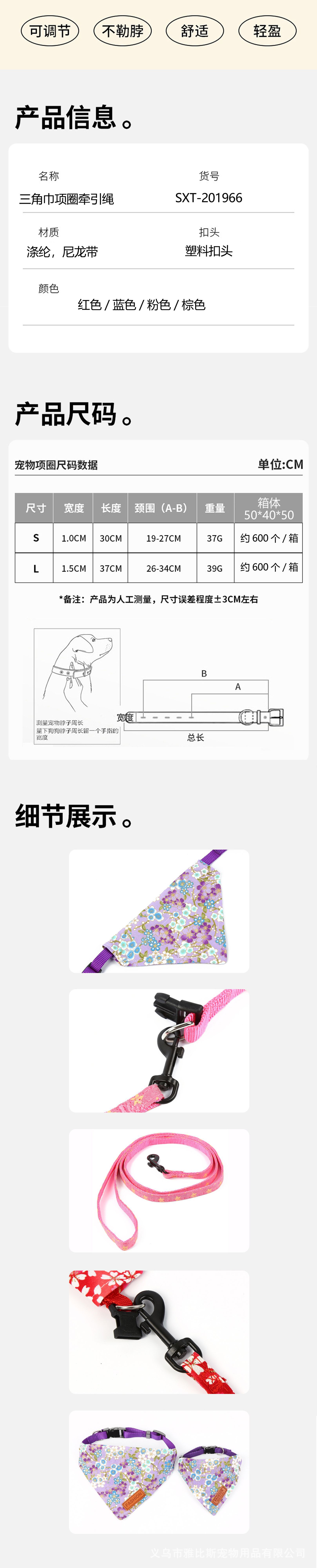 공장 직영 새 개 견인 세트 삼각형 수건 애완 동물 용품 목걸이 중소 개 견인 로프 도매스토어 가기