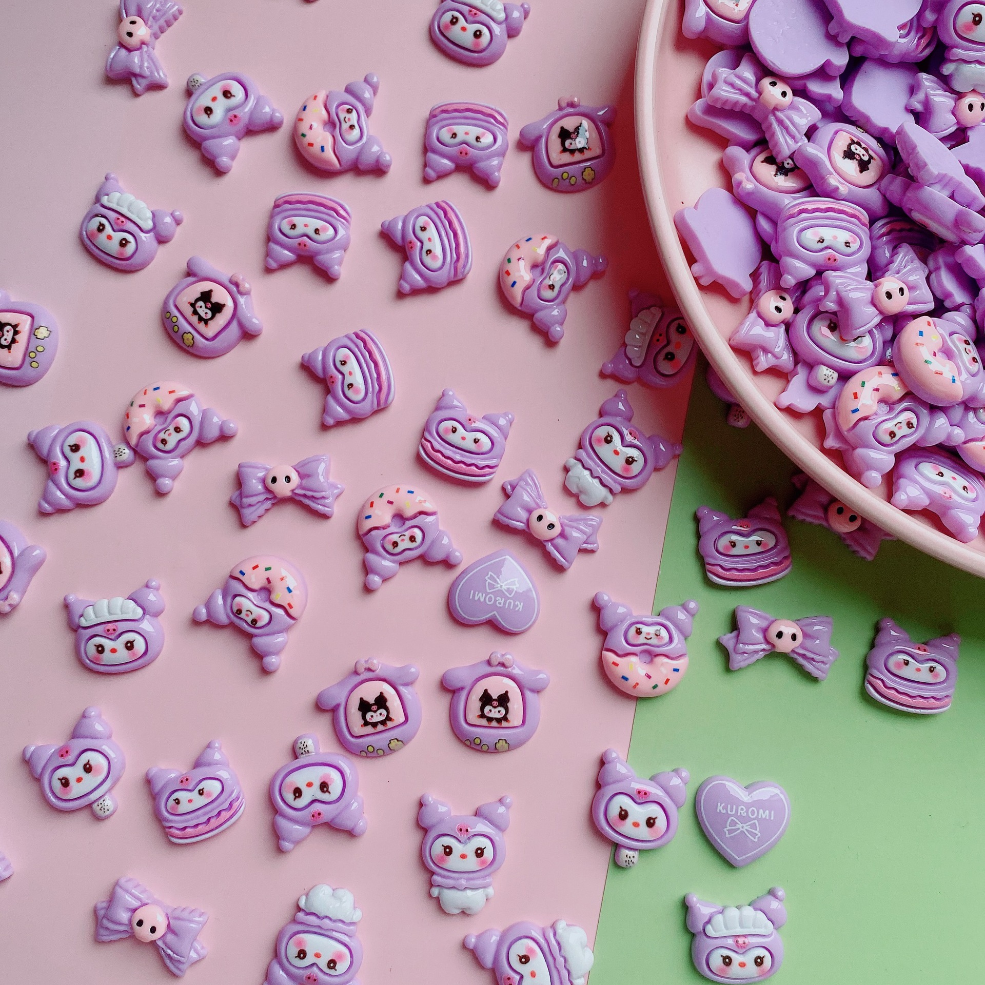 밝은 보라색 도서관 가방 시리즈 DIY 크림 전화 케이스 수지 액세서리 수제 헤어핀 헤드 라인 소재 가방