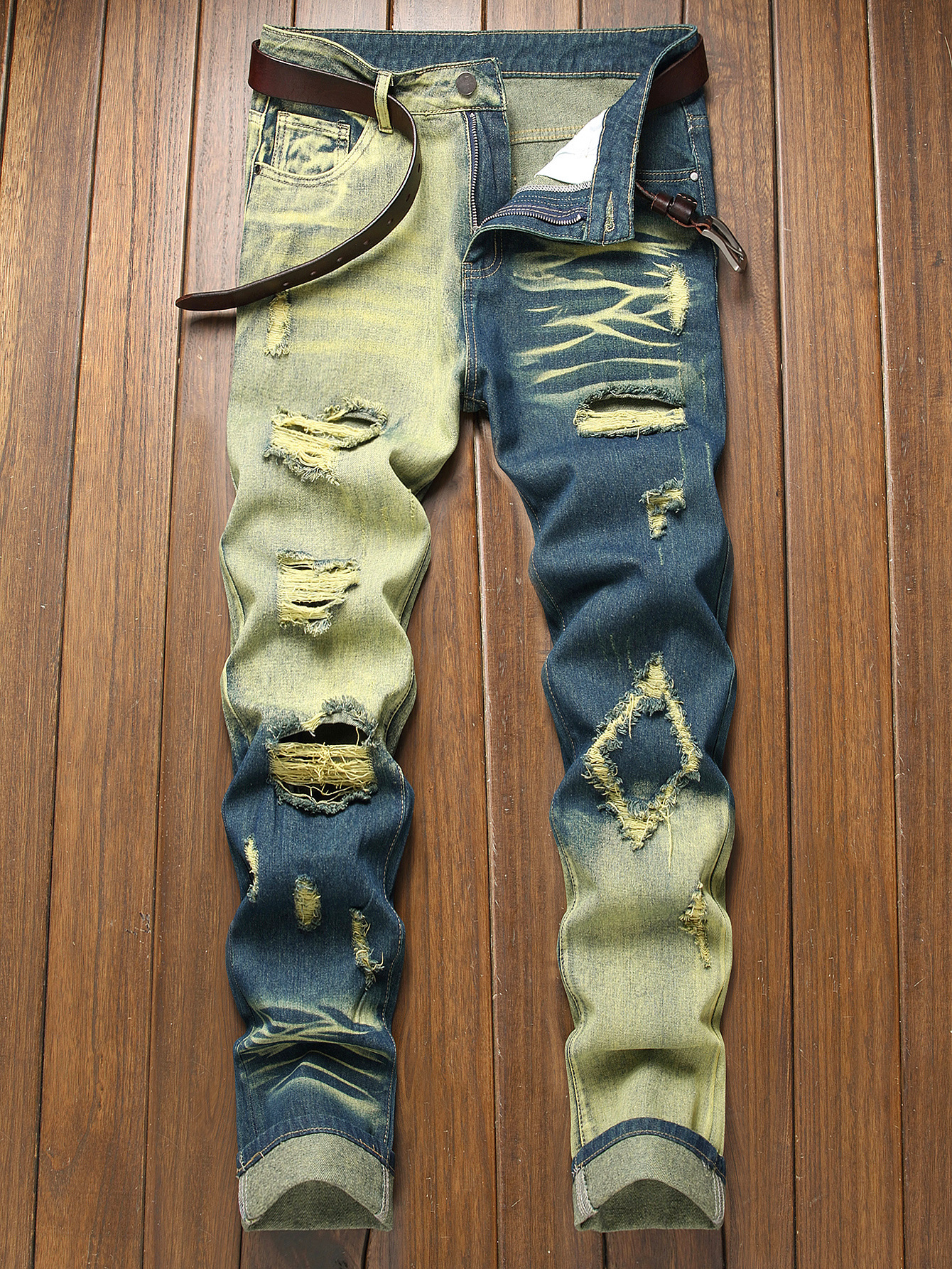 2023 새로운 국경 간 대외 무역 아마존 AliExpress 트렌드 깨진 구멍 패션 편안한 데님 남성 바지