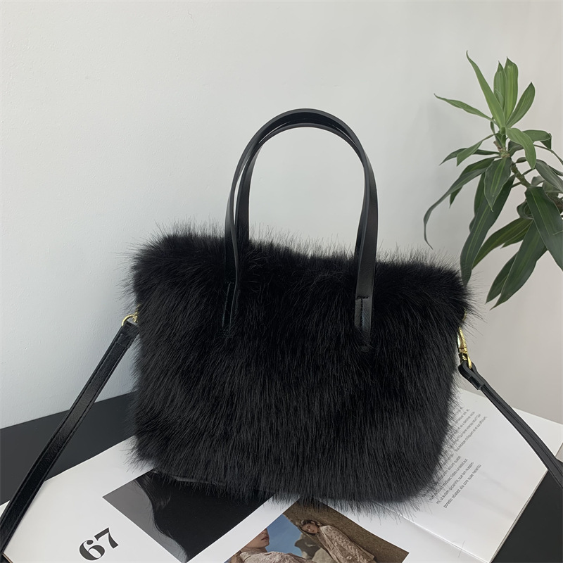 2023 가을과 겨울 새로운 모피 가방 가짜 여우 머리 크로스바디 숄더 스트랩 고급 토트 백 야채 바구니 핸드백