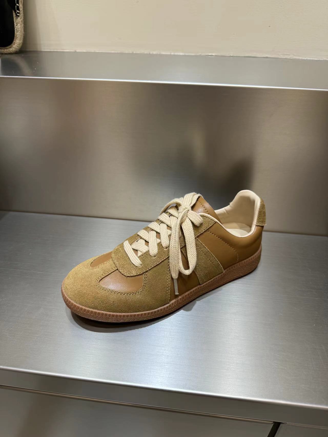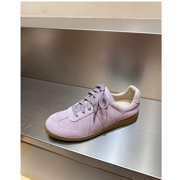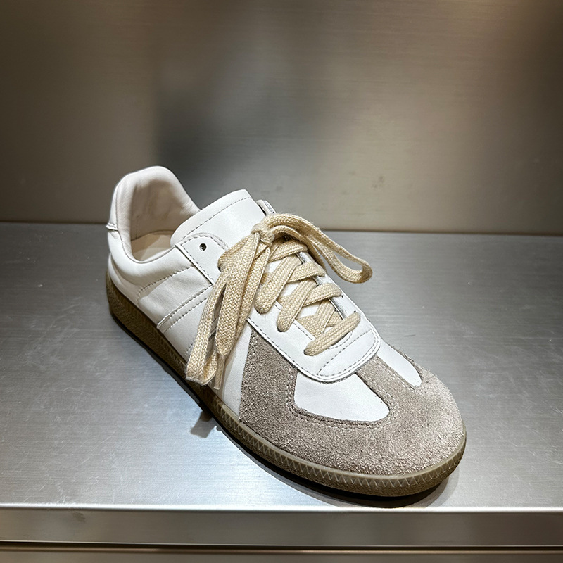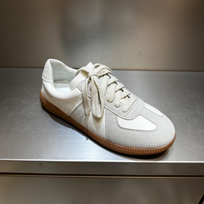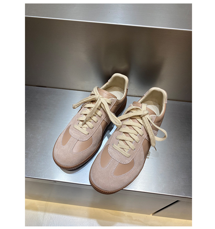 한국 컬러 매칭 독일 트레이닝 슈즈 레트로 라운드 토 레이스 업 운동화 여성의 가을과 겨울 모든 매치 캐주얼 플랫 가죽 화이트 슈즈스토어 가기