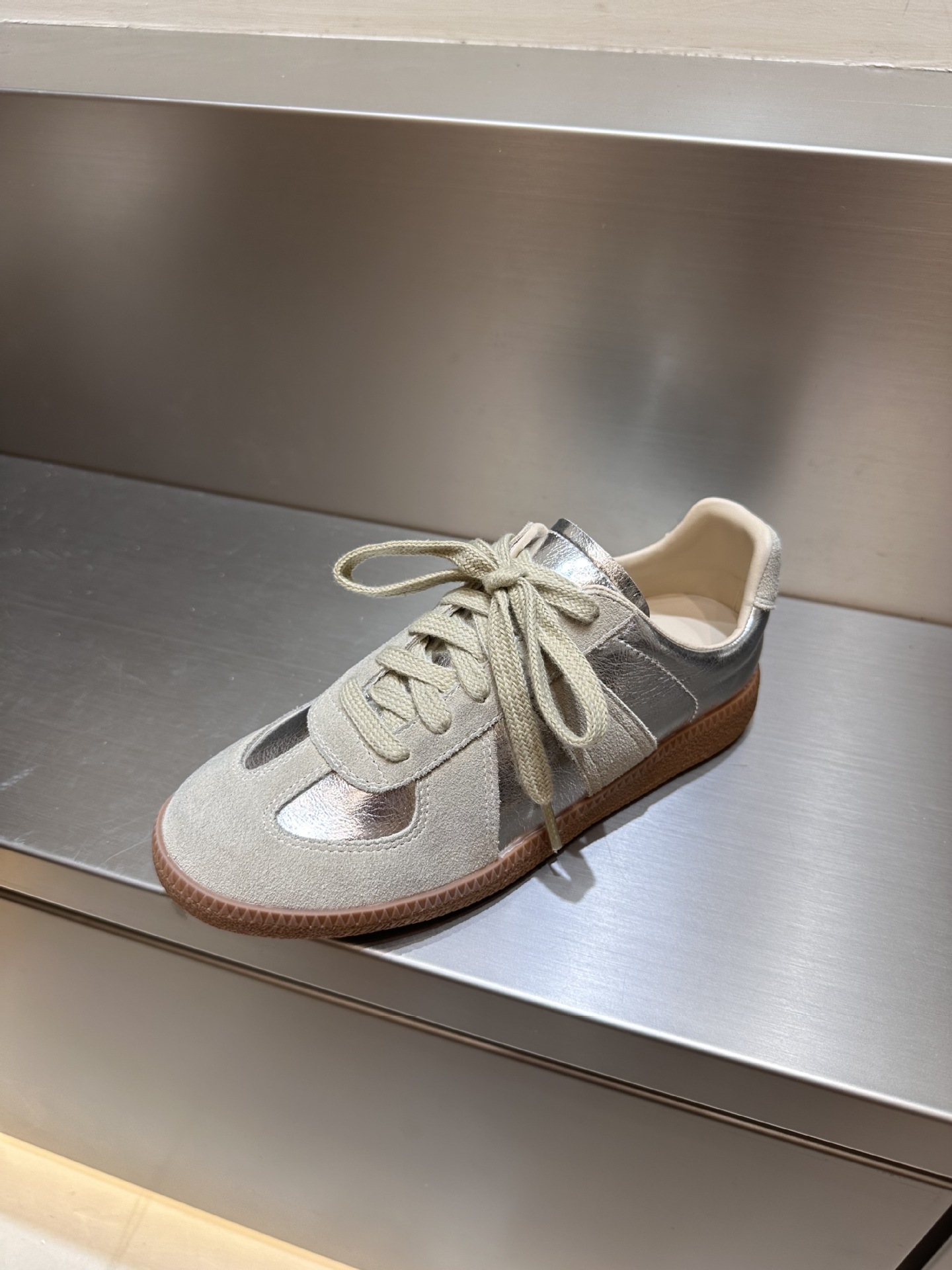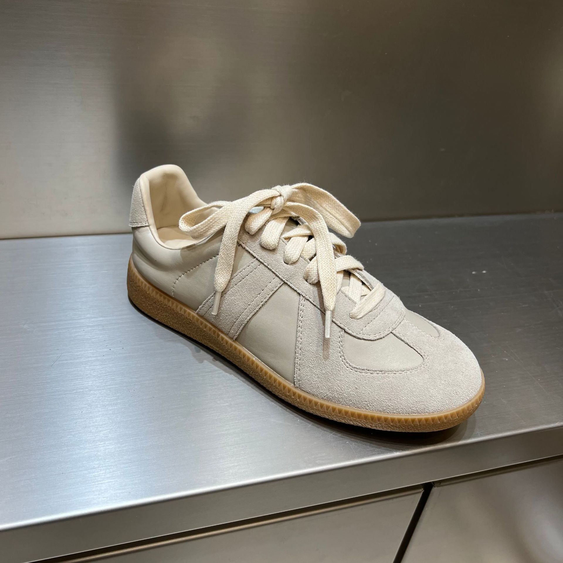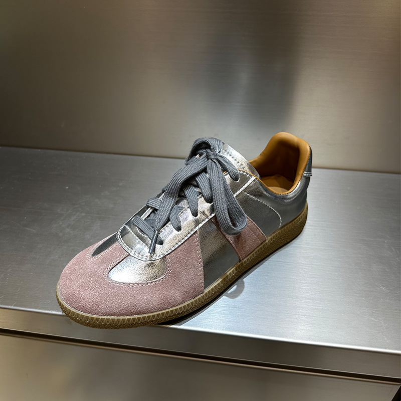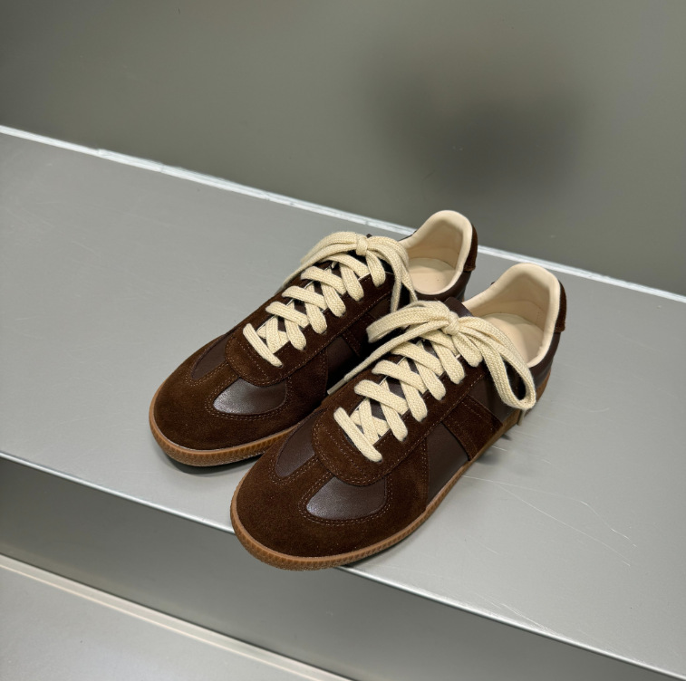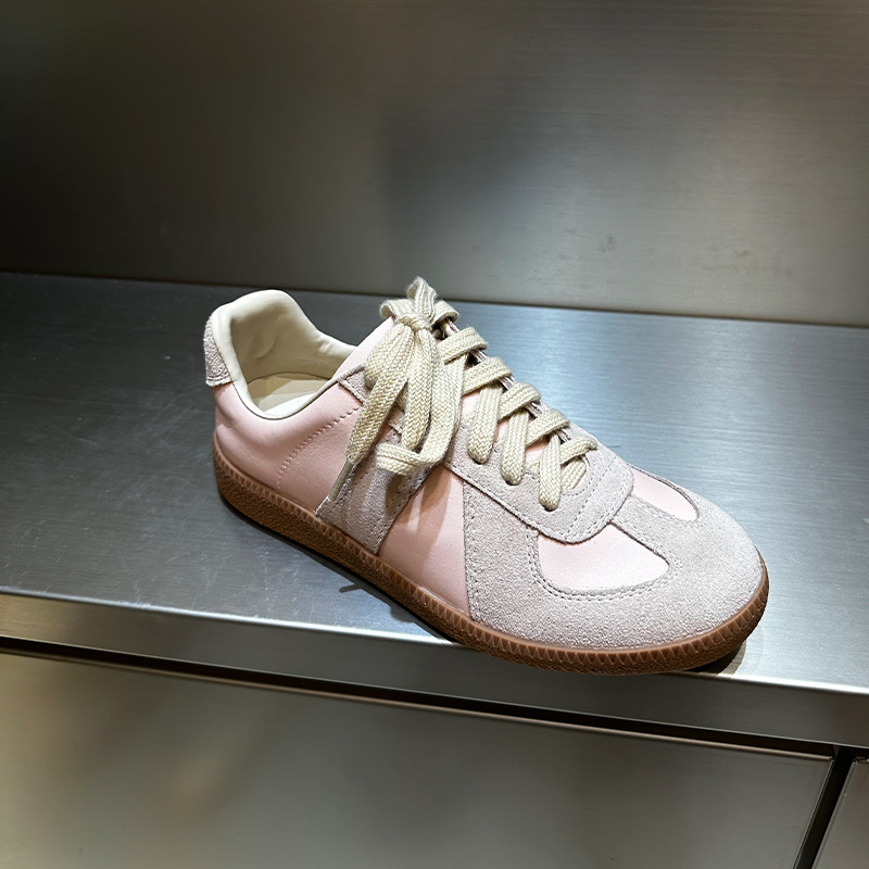 한국 컬러 매칭 독일 트레이닝 슈즈 레트로 라운드 토 레이스 업 운동화 여성의 가을과 겨울 모든 매치 캐주얼 플랫 가죽 화이트 슈즈스토어 가기