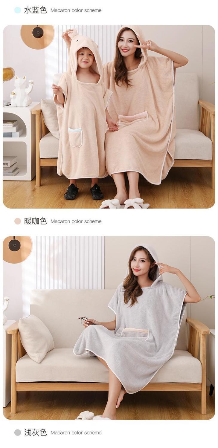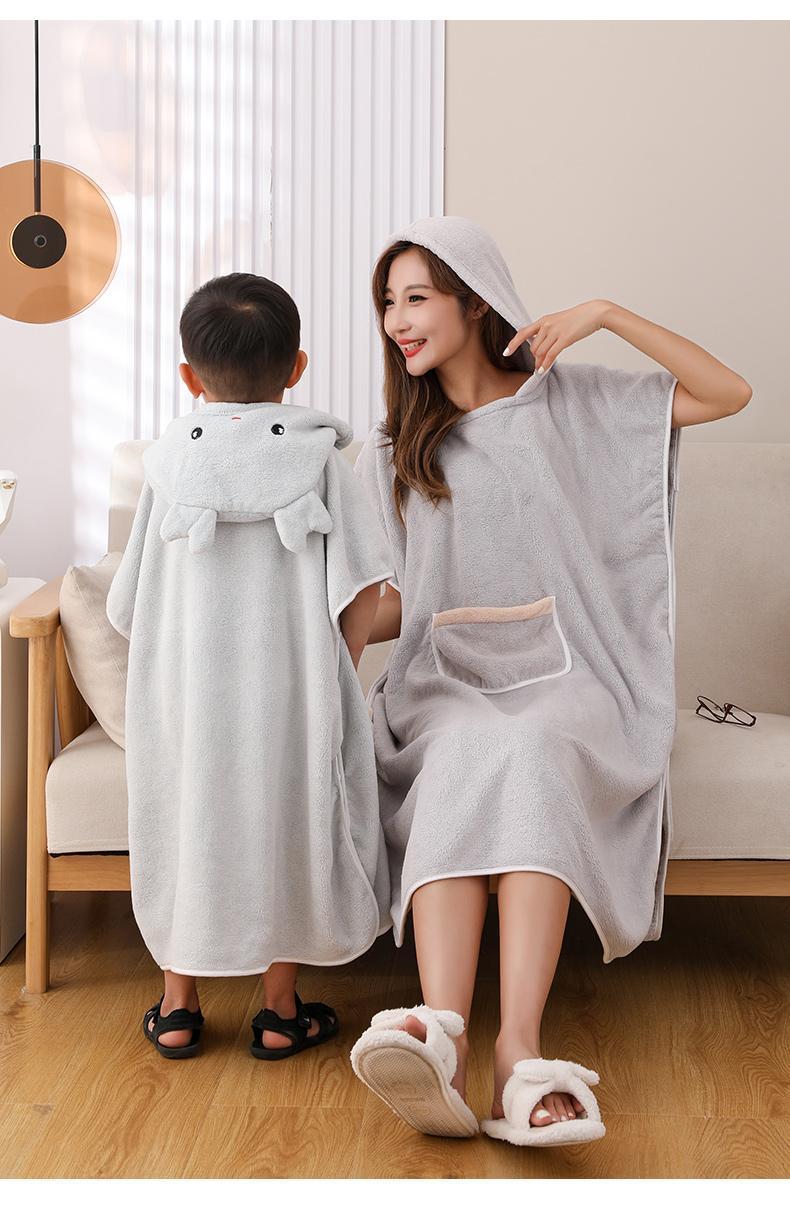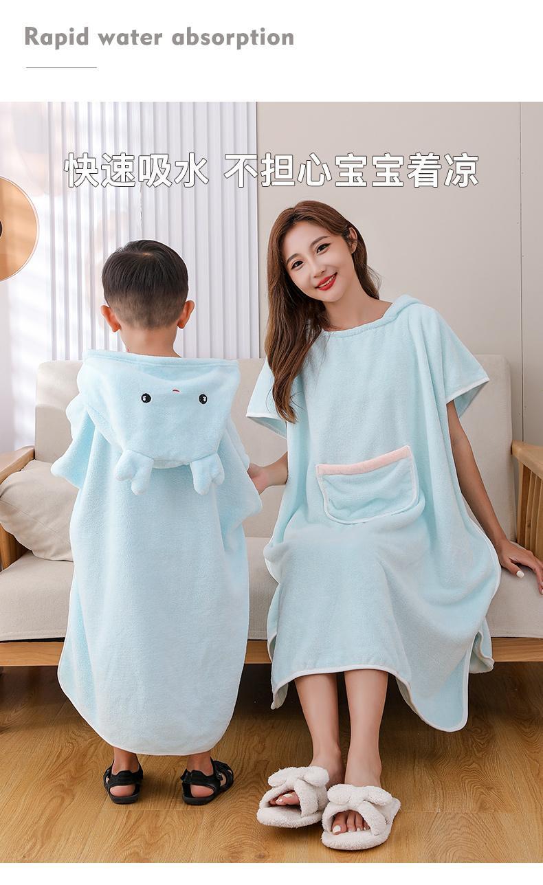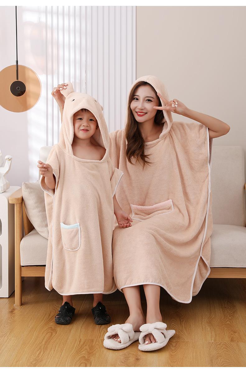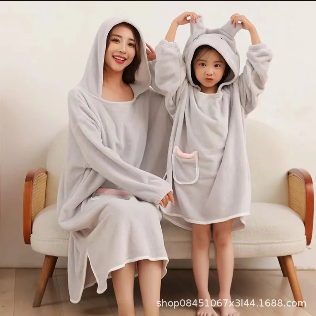 어린이 목욕 가운 여성용 산호 양털 흡수성 속건 두꺼운 목욕 착용 플러스 사이즈 성인 부모-자식 후드 판초 목욕 타올