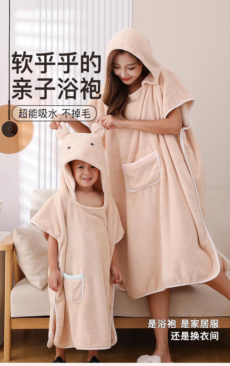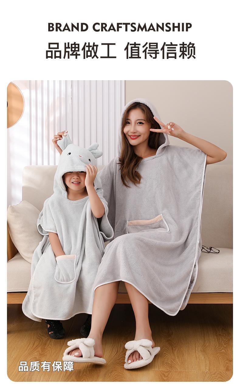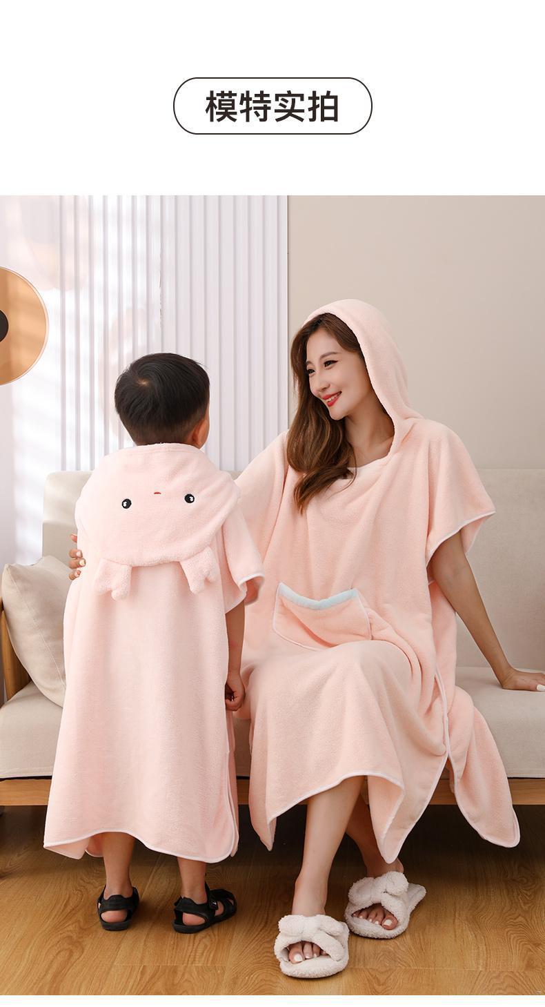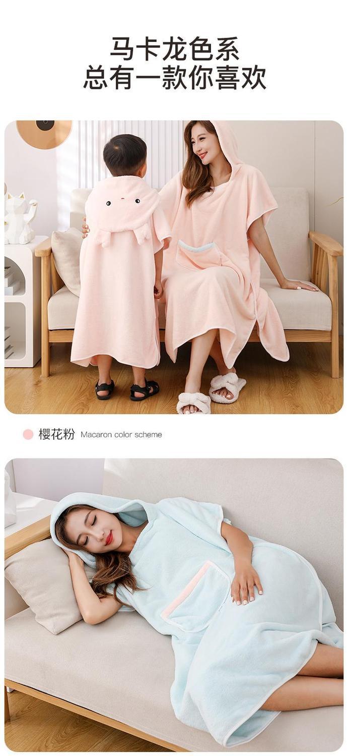 어린이 목욕 가운 여성용 산호 양털 흡수성 속건 두꺼운 목욕 착용 플러스 사이즈 성인 부모-자식 후드 판초 목욕 타올