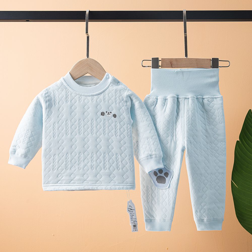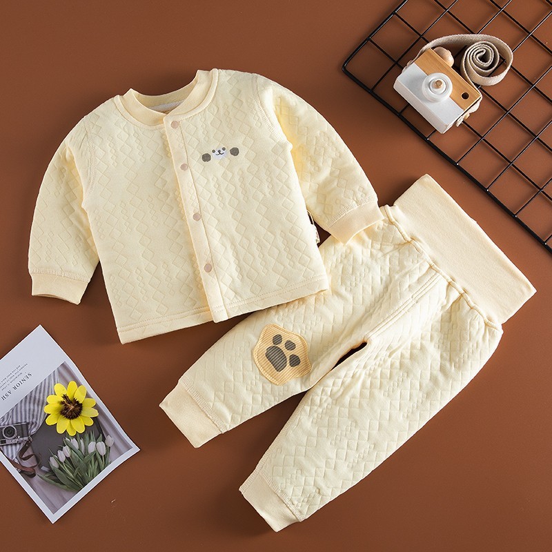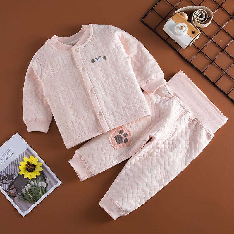 아기의 따뜻한 하이 웨이스트 배꼽 바지 세트 카디건 아기의 3 층 누비 이불 속옷 세트 얇은 면 가을과 겨울 의류