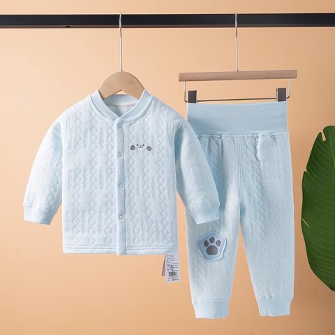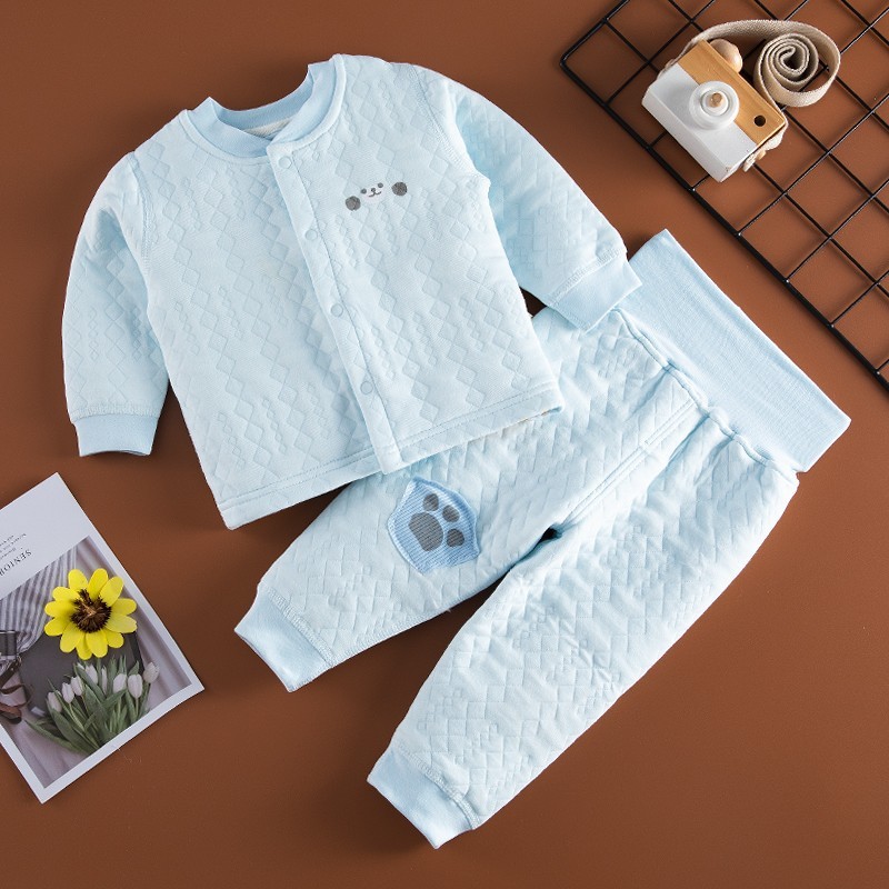 아기의 따뜻한 하이 웨이스트 배꼽 바지 세트 카디건 아기의 3 층 누비 이불 속옷 세트 얇은 면 가을과 겨울 의류스토어 가기