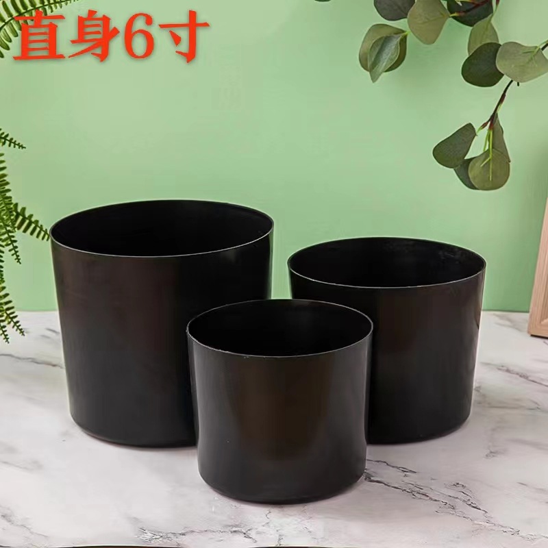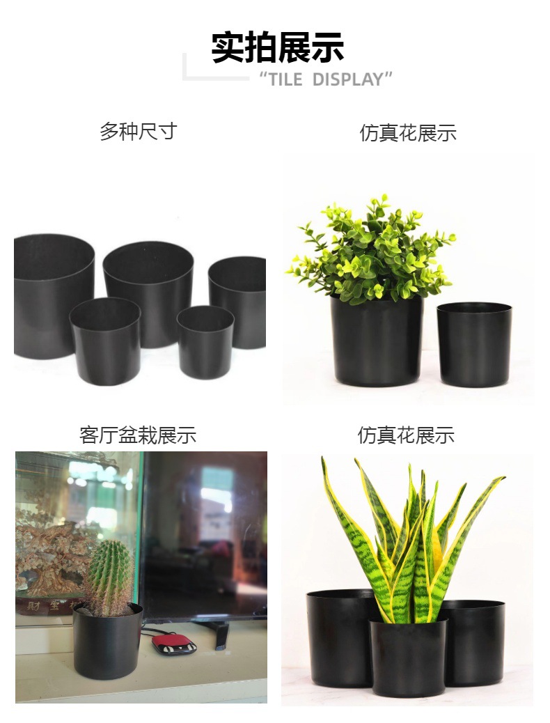 소스 공장 직접 공급 pp 블랙 실린더 플라스틱 화분 시뮬레이션 식물 공예 둥근 숲 풍경 6 인치 블랙스토어 가기