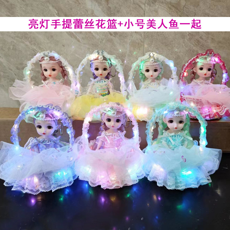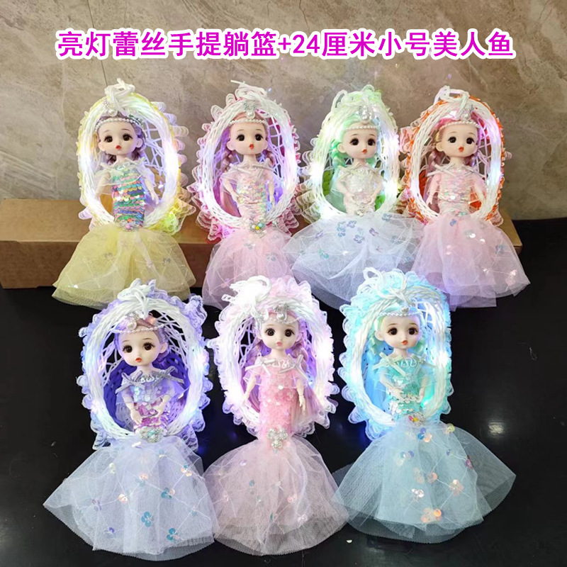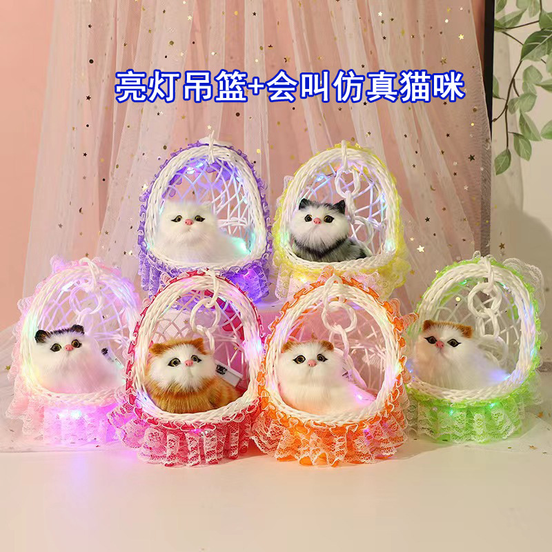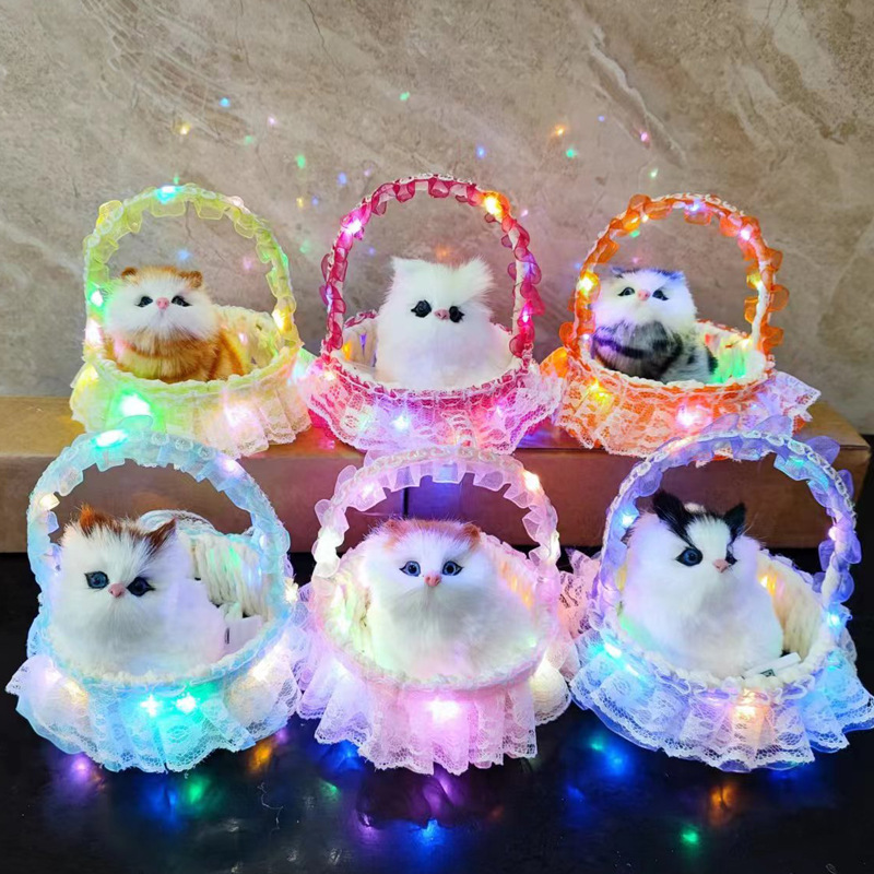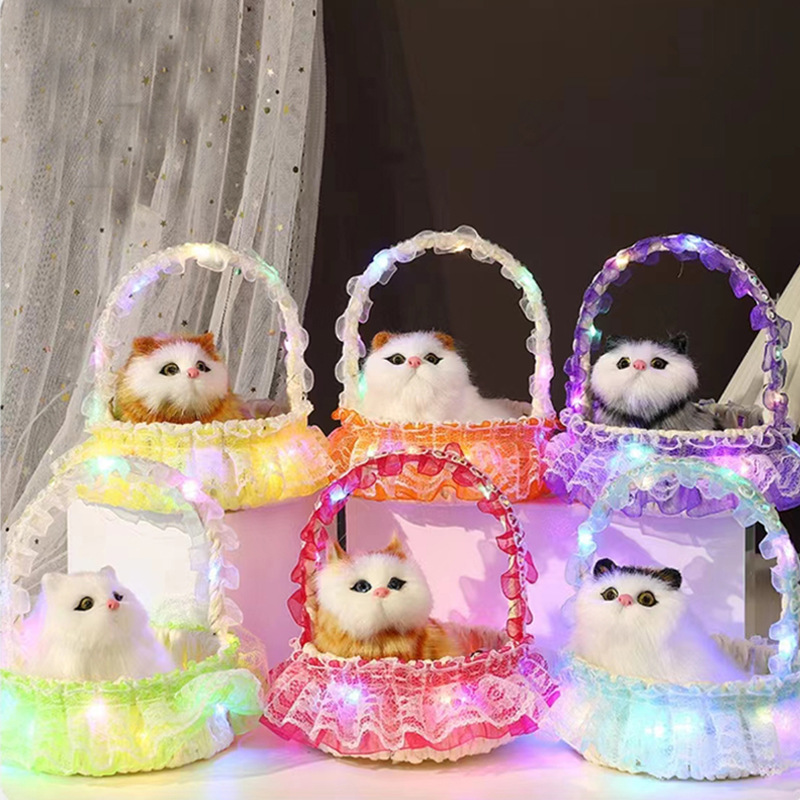 공장 조명 바구니는 고양이를 호출합니다. 빛나는 바구니 인형 랜턴 펜던트 깜박이는 빛 꽃 바구니 인어 어린이 장난감