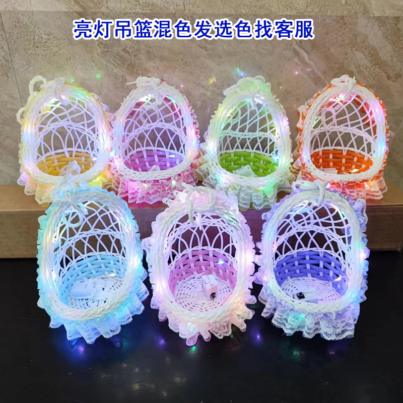 공장 조명 바구니는 고양이를 호출합니다. 빛나는 바구니 인형 랜턴 펜던트 깜박이는 빛 꽃 바구니 인어 어린이 장난감스토어 가기