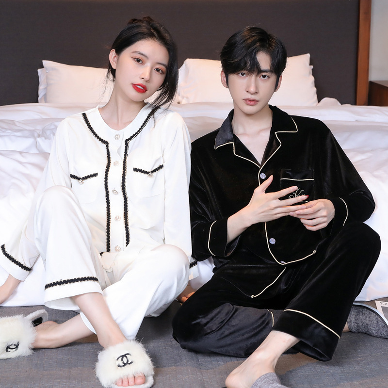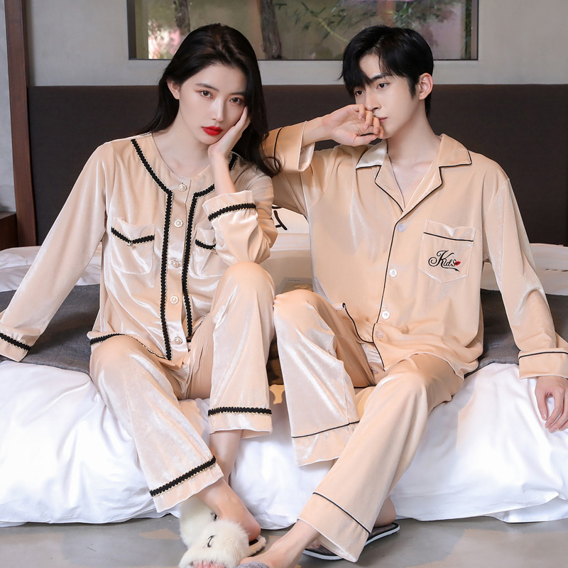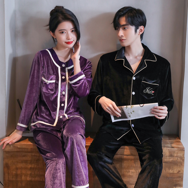 황금 벨벳 커플 잠옷 가을과 겨울 여자의 두꺼운 카디건 플러스 사이즈 세트 긴 소매 아웃웨어 남자의 가정 의류스토어 가기