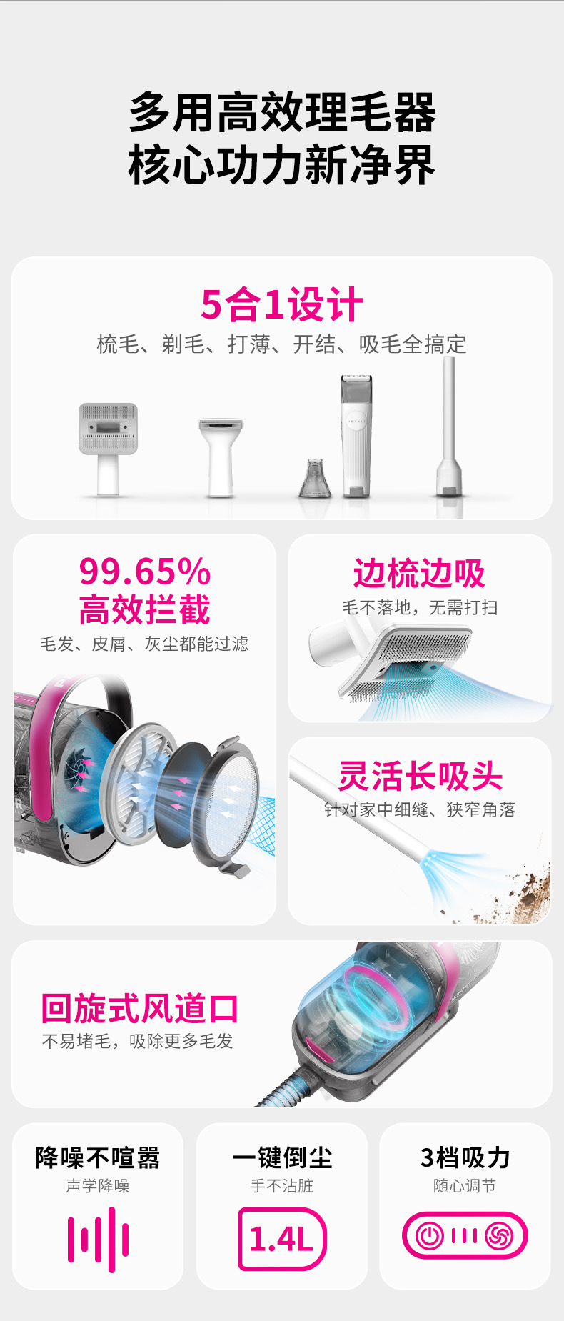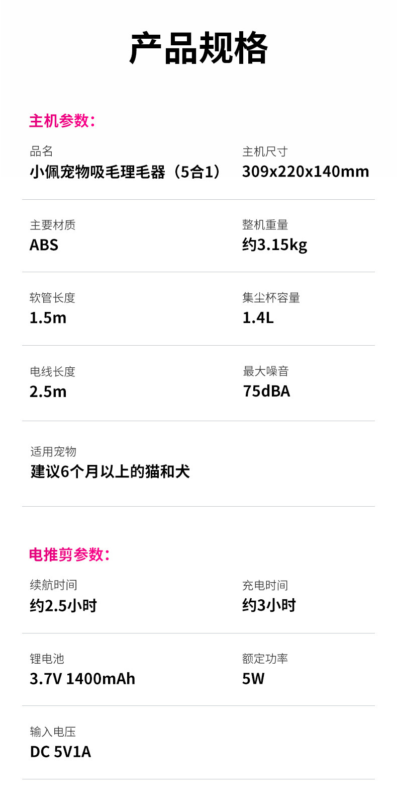 소형/Pei Five-in-One 다기능 애완 동물 헤어 미용 장치 개 청소 및 미용 도구 헤어 흡수기 헤어 면도 장치 전기 푸시