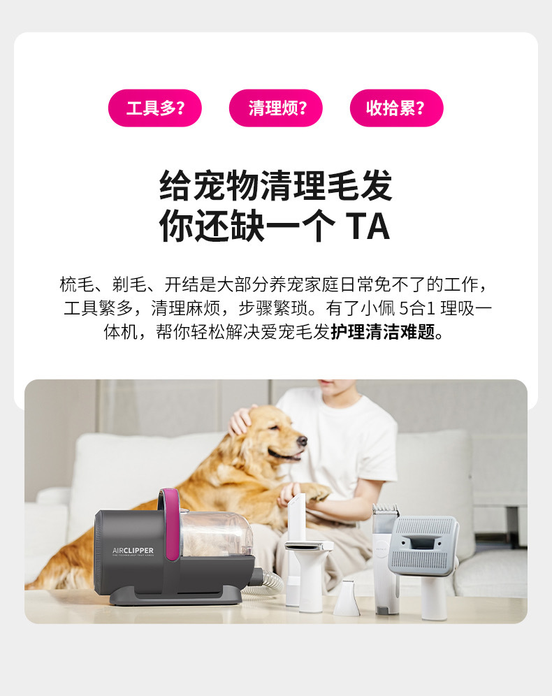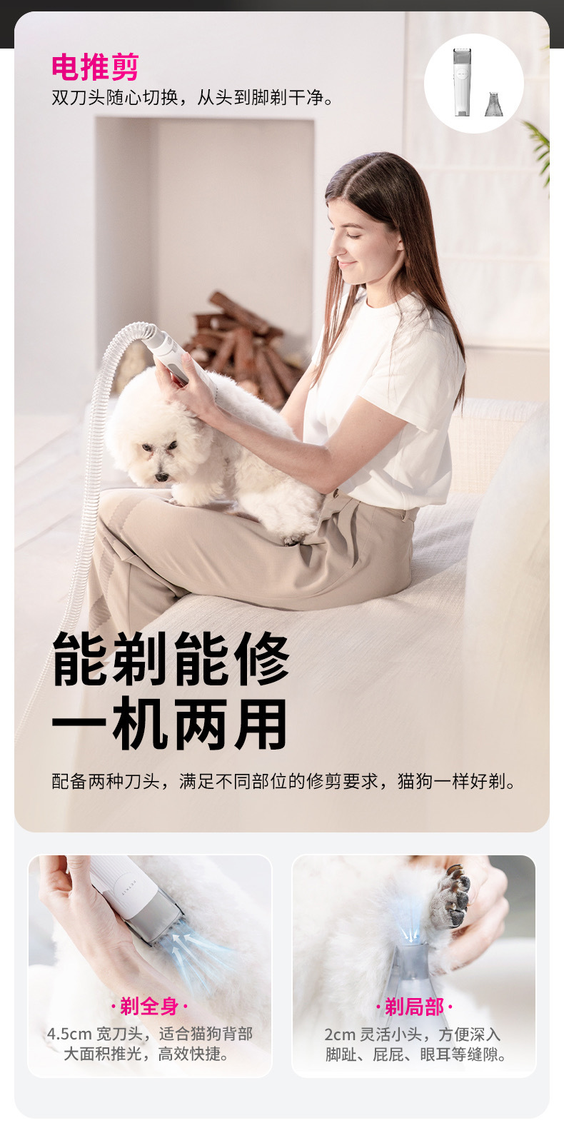 소형/Pei Five-in-One 다기능 애완 동물 헤어 미용 장치 개 청소 및 미용 도구 헤어 흡수기 헤어 면도 장치 전기 푸시스토어 가기