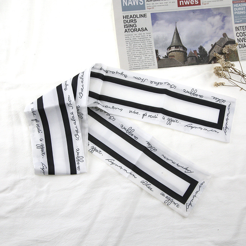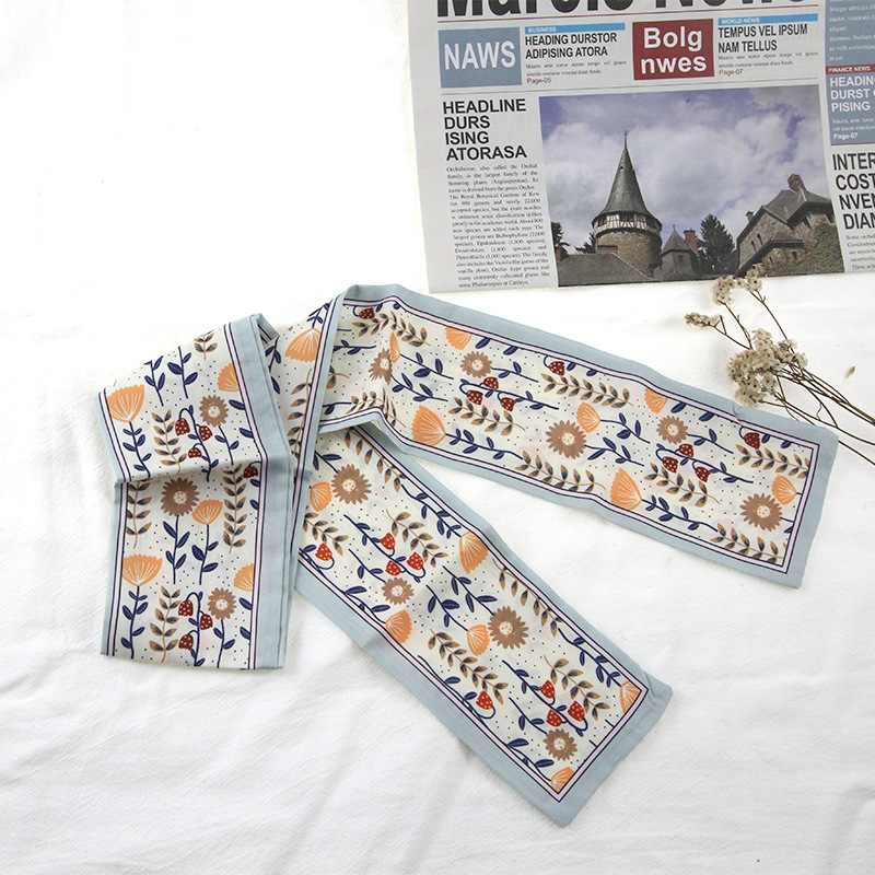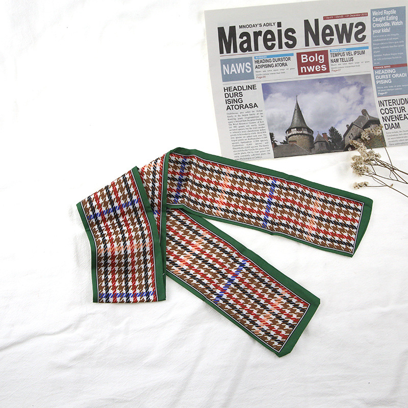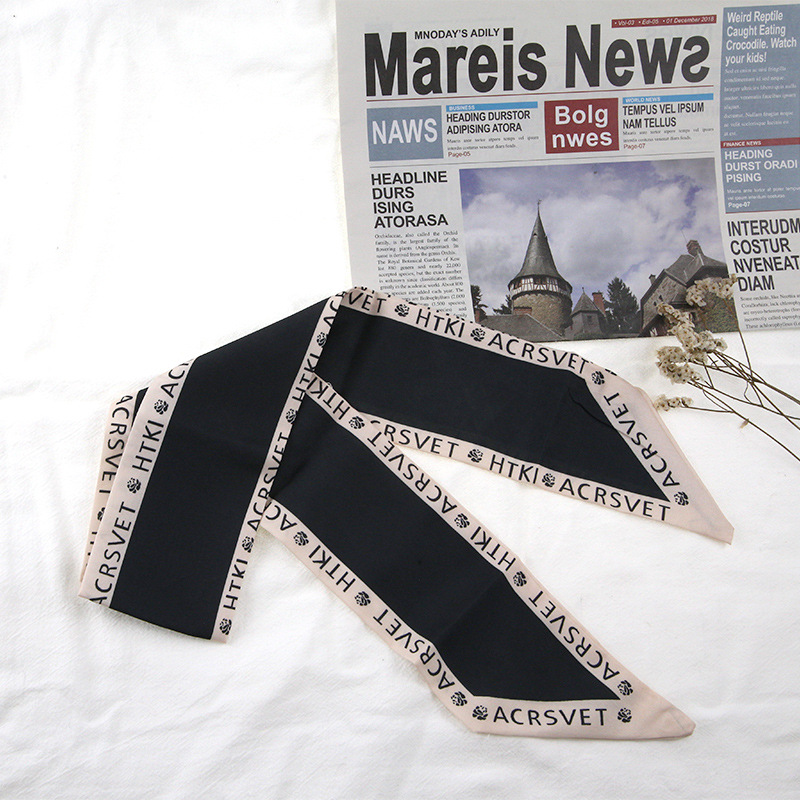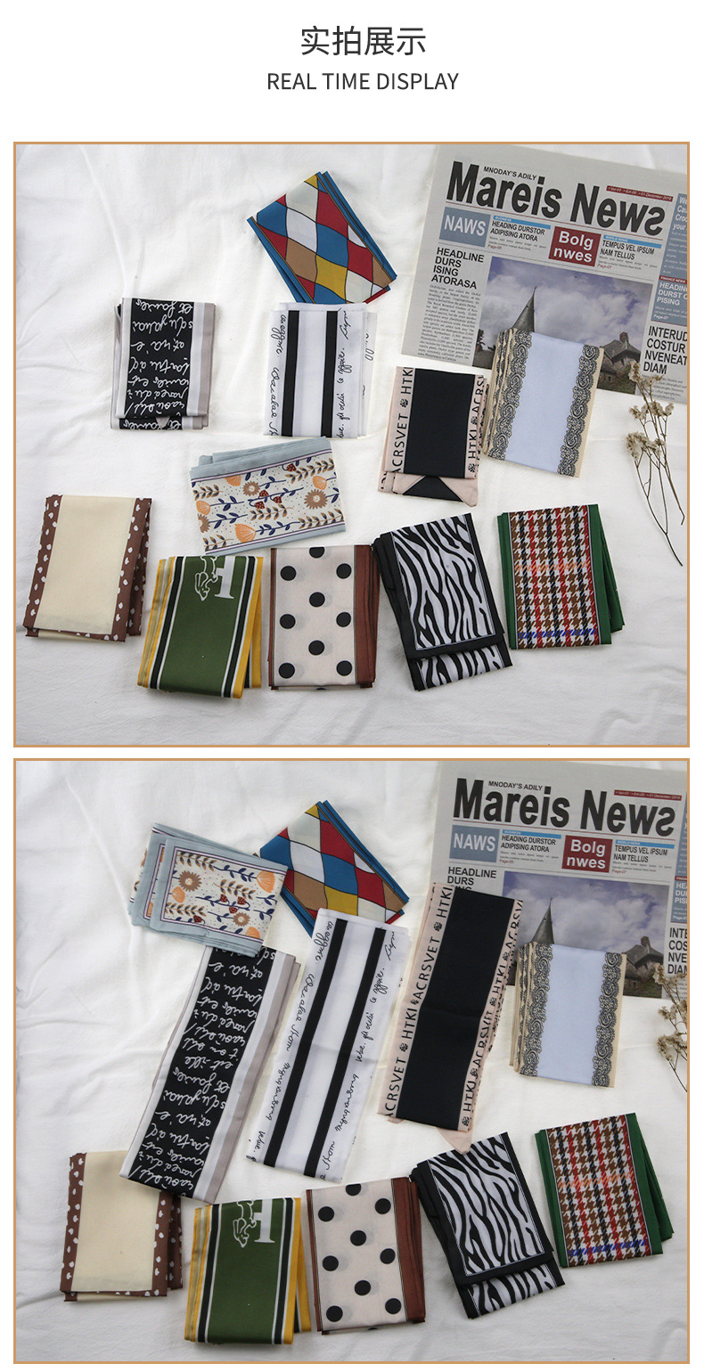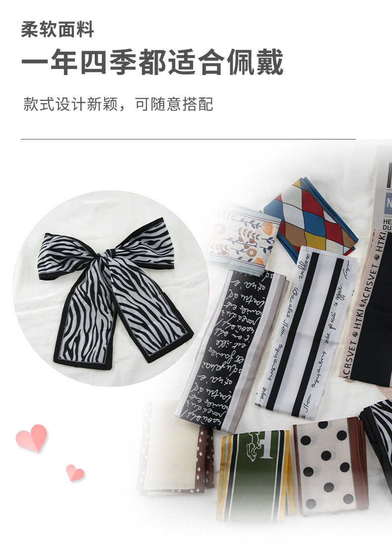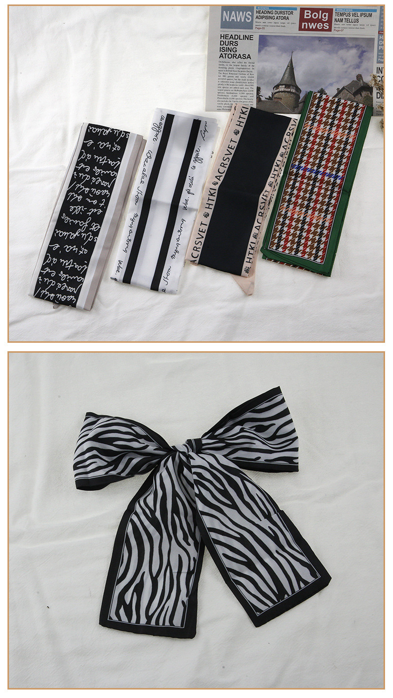 프랑스 스타일 레트로 실크 스카프 헤어 밴드 간단한 우아한 새틴 플랫 코너 실크 스카프 더블 레이어 리본 여성 스카프 헤어 밴드 타이 백스토어 가기