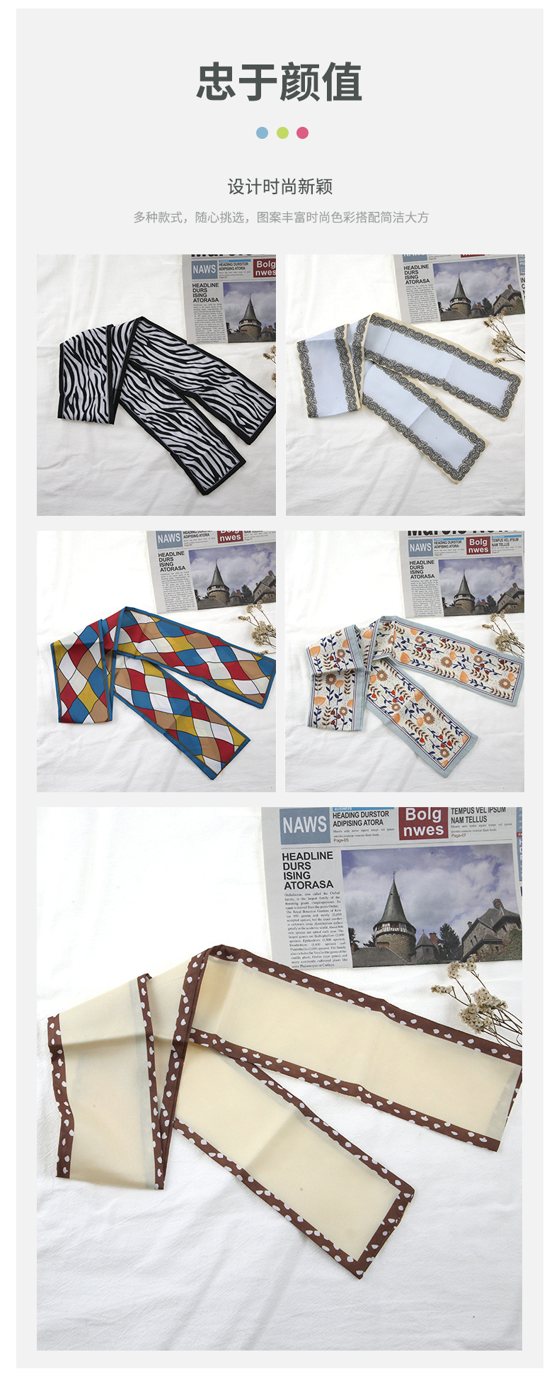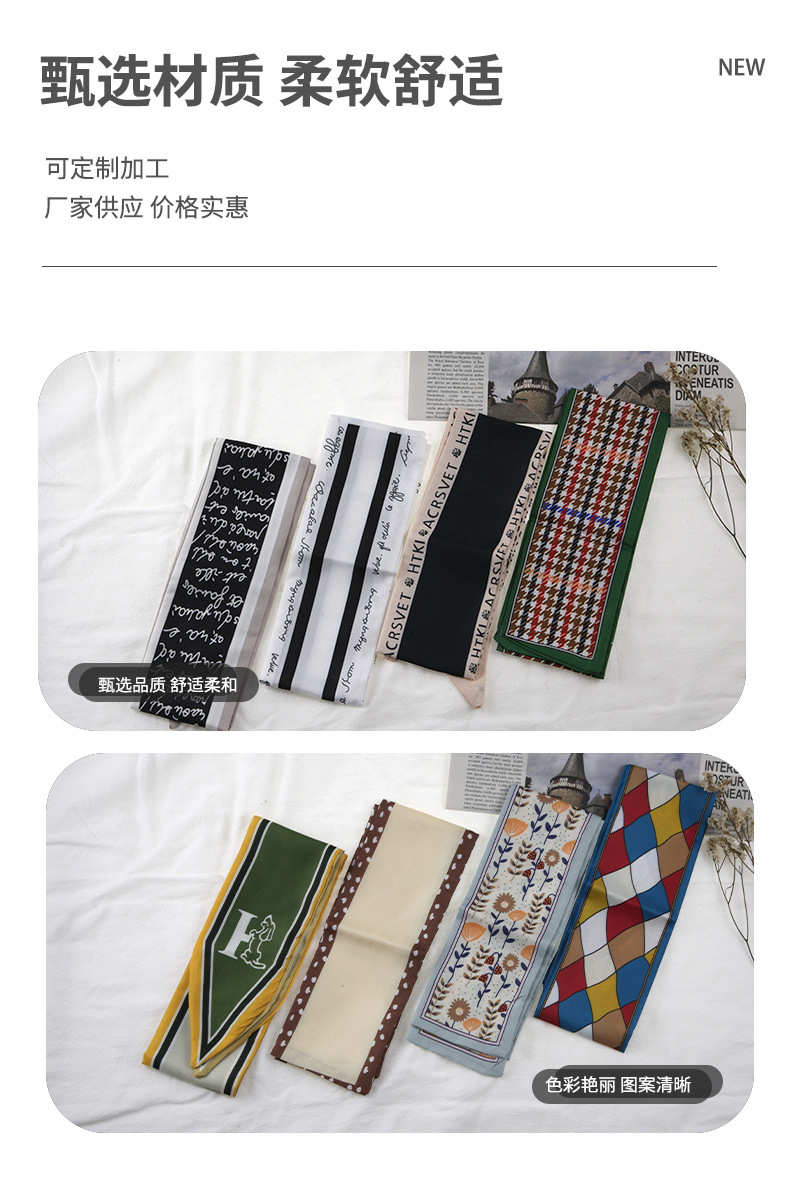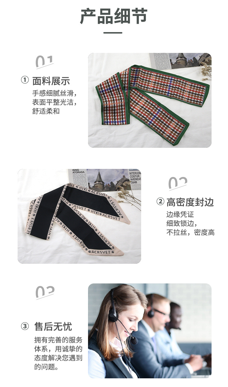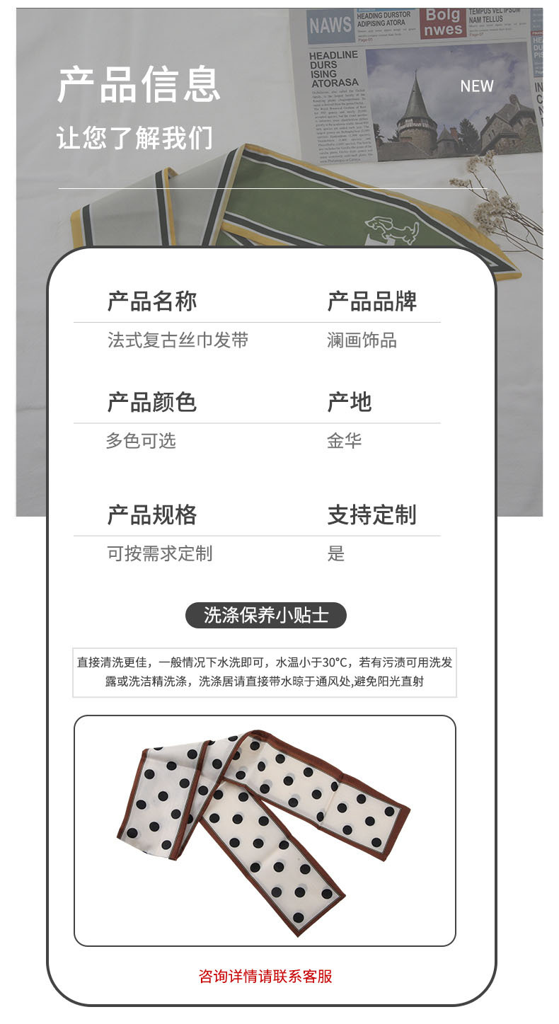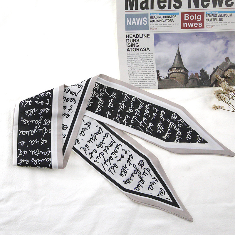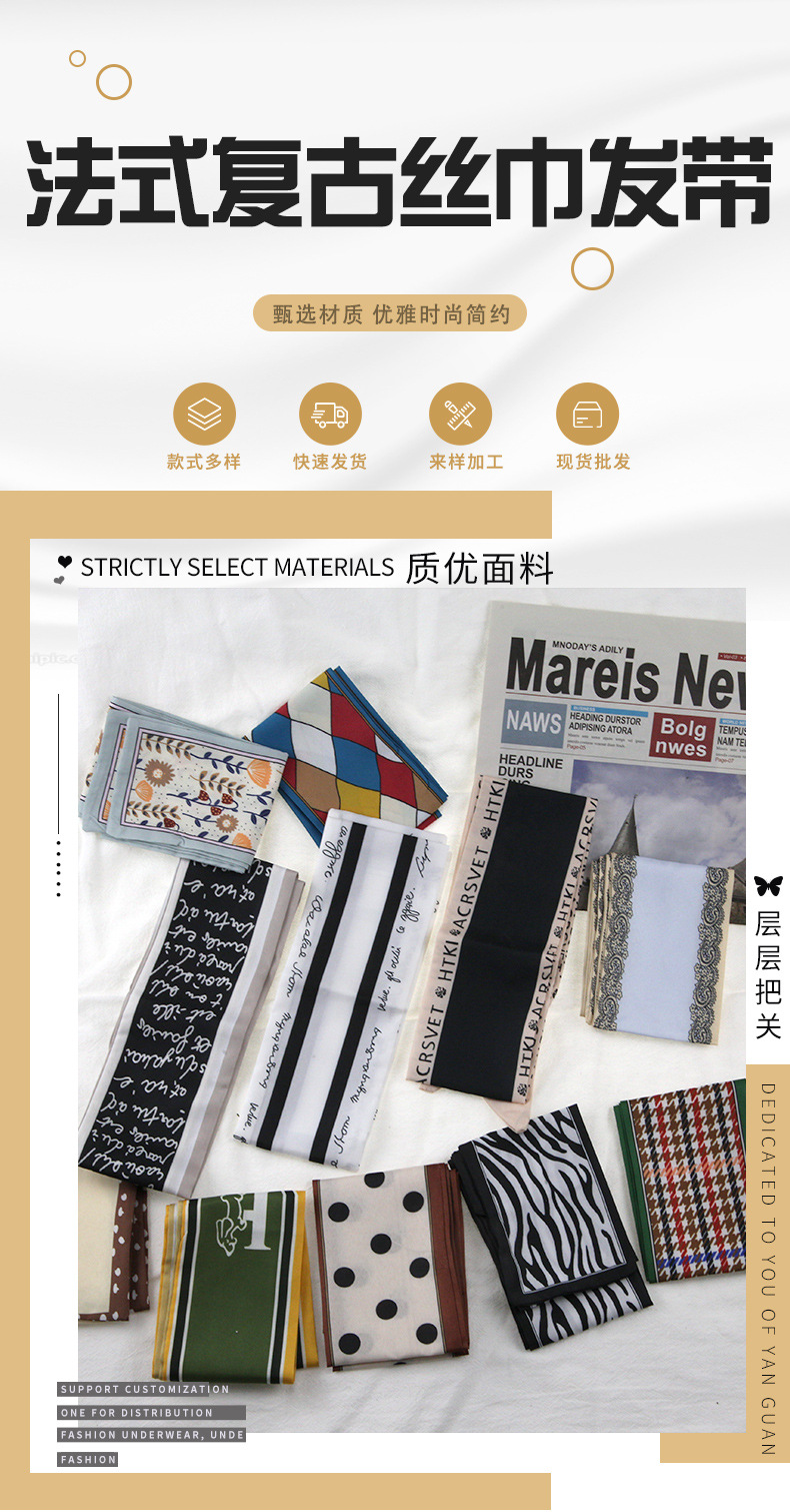 프랑스 스타일 레트로 실크 스카프 헤어 밴드 간단한 우아한 새틴 플랫 코너 실크 스카프 더블 레이어 리본 여성 스카프 헤어 밴드 타이 백스토어 가기
