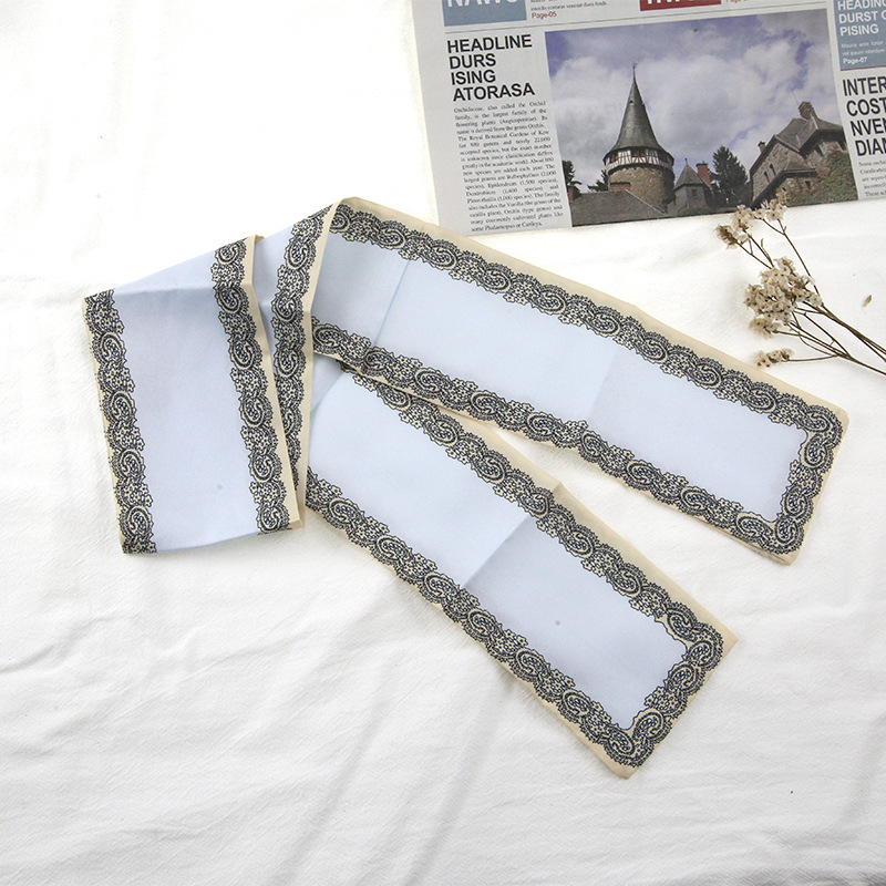 프랑스 스타일 레트로 실크 스카프 헤어 밴드 간단한 우아한 새틴 플랫 코너 실크 스카프 더블 레이어 리본 여성 스카프 헤어 밴드 타이 백