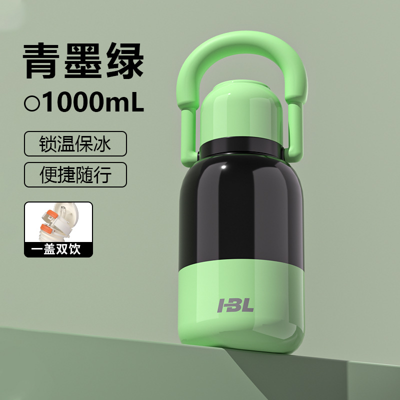 • 청록색 1000mL [올스틸 진공외커버 + 밀짚커버 + 휴대용 손잡이]