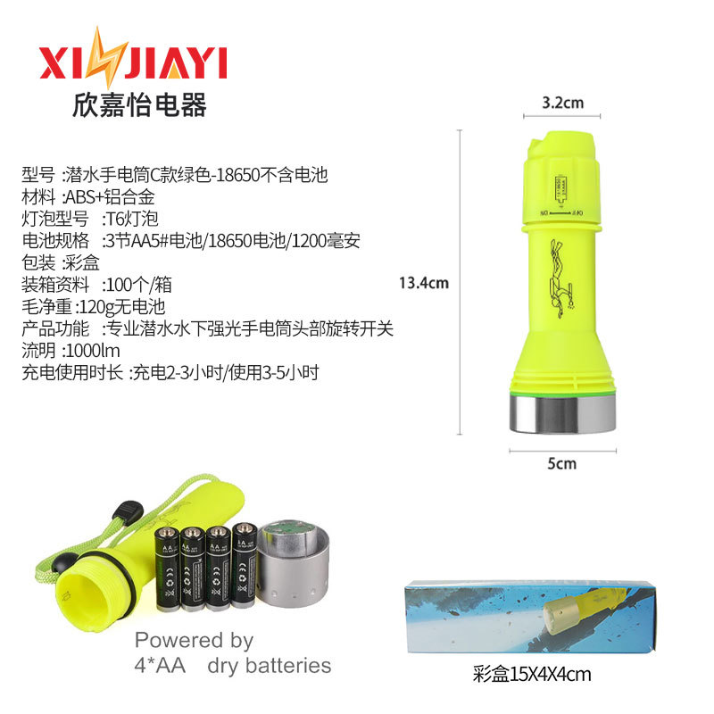 LED 고휘도 다이빙 손전등 강한 빛 동굴 탐험 조명 건전지 손전등 야외 휴대용 자기 제어 램프