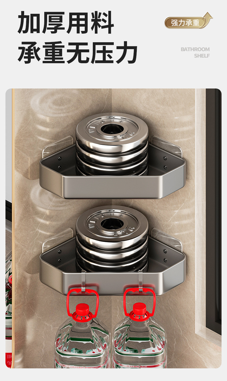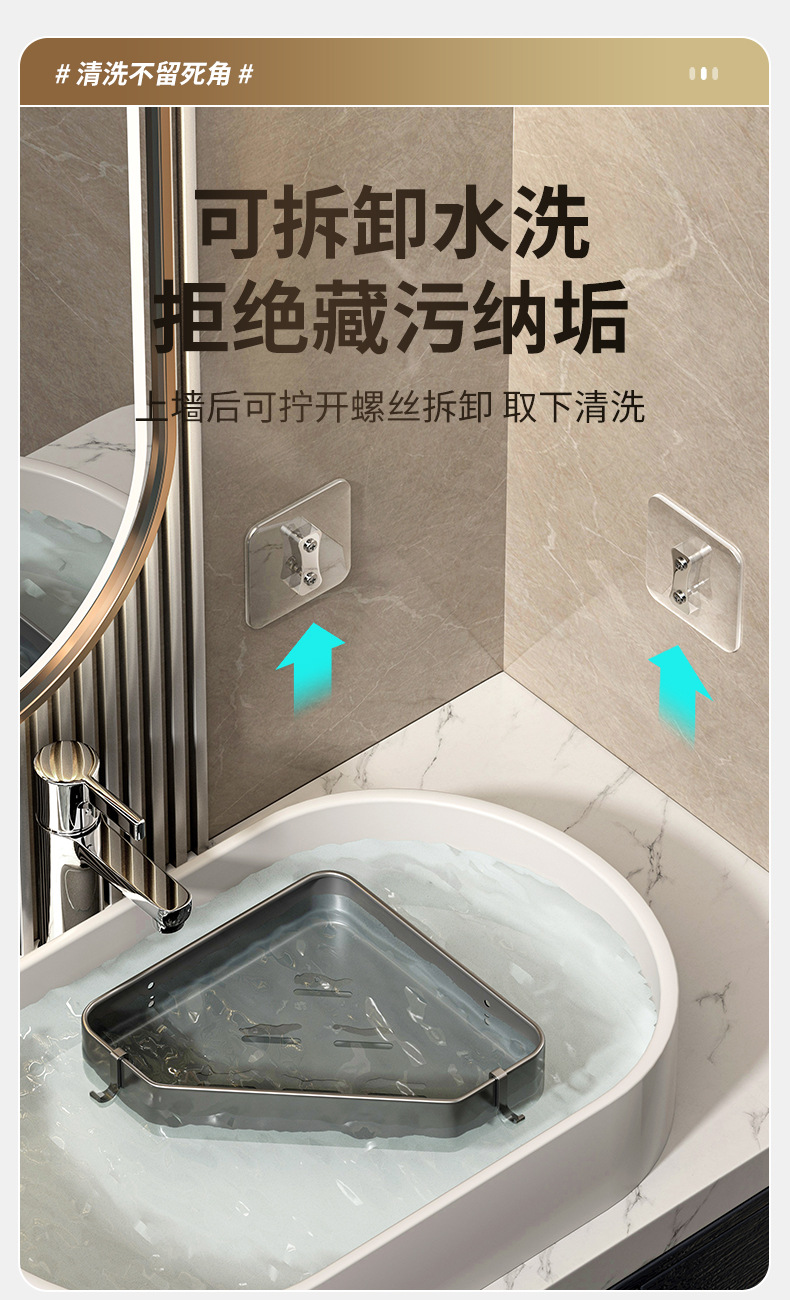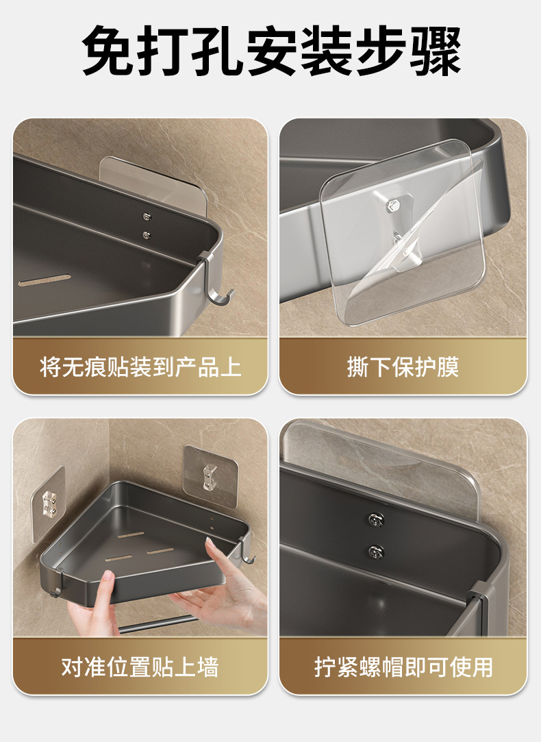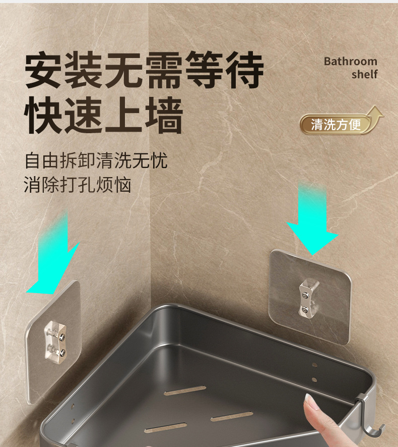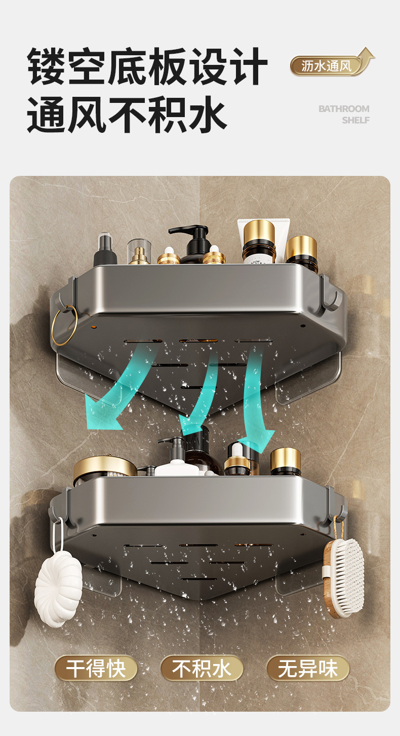 펀치 프리 욕실 코너 랙 주방 및 욕실 수납 벽 코너 벽걸이 형 화장실 삼각형 바구니 선반 발코니