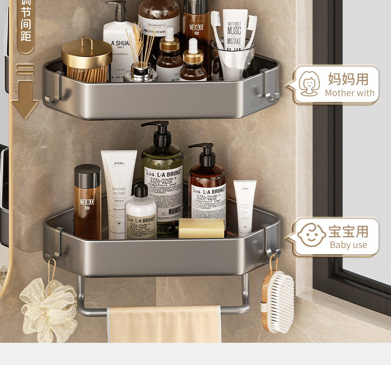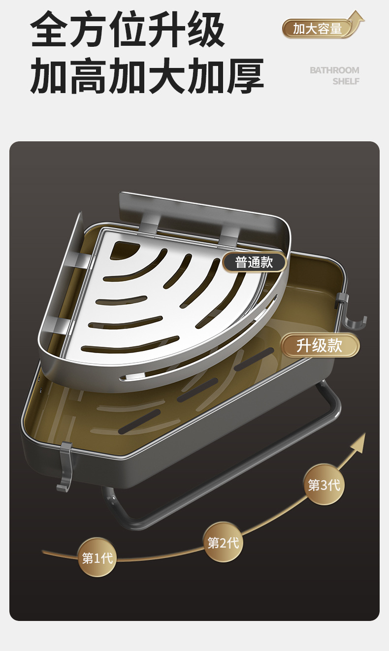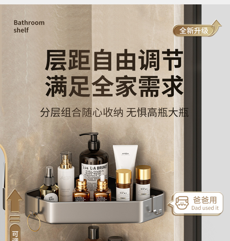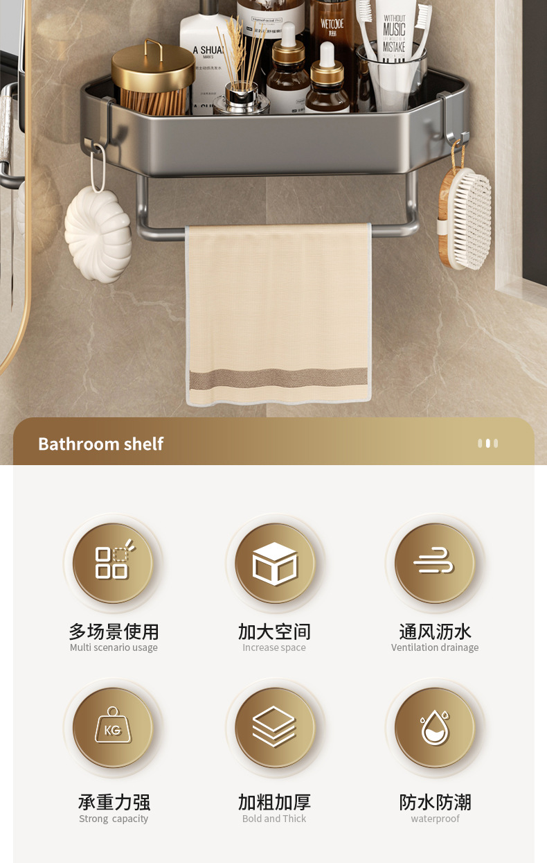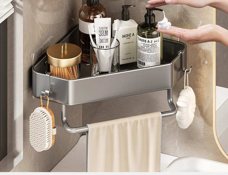 펀치 프리 욕실 코너 랙 주방 및 욕실 수납 벽 코너 벽걸이 형 화장실 삼각형 바구니 선반 발코니