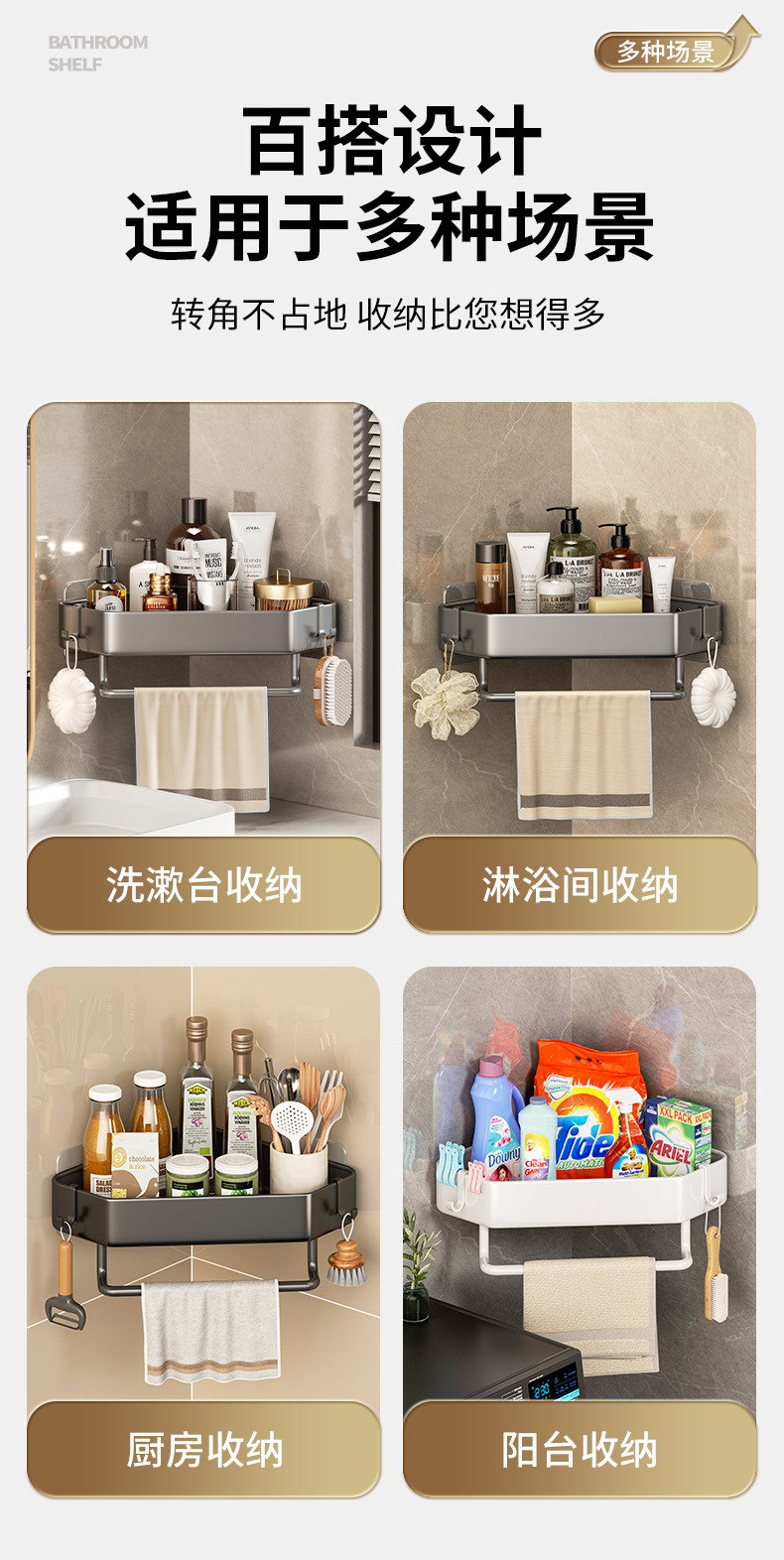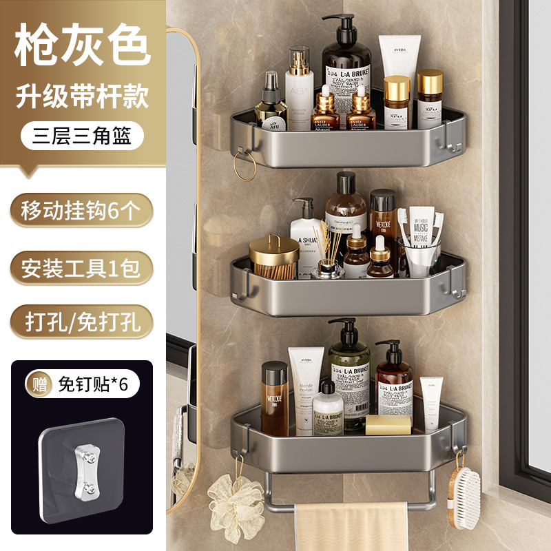 펀치 프리 욕실 코너 랙 주방 및 욕실 수납 벽 코너 벽걸이 형 화장실 삼각형 바구니 선반 발코니스토어 가기