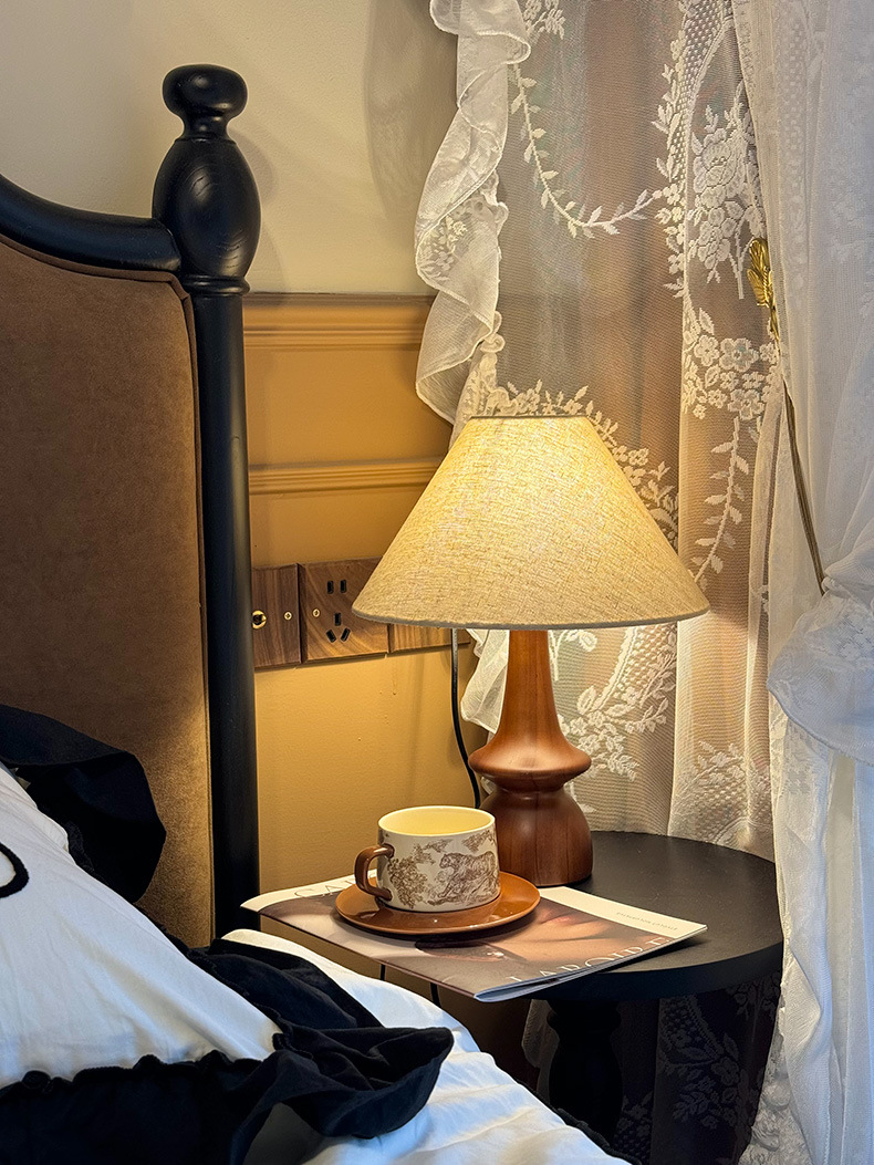 인터넷 연예인 단단한 나무 복고풍 크리 에이 티브 테이블 램프 B & B 침실 장식 중세 고대 스타일 프랑스 미국 로맨틱 침대 옆 램프스토어 가기