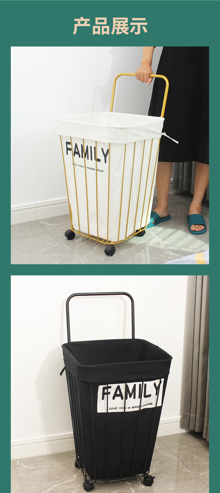 • 검정색 카트 + 고무 바퀴 + 흰색 안감