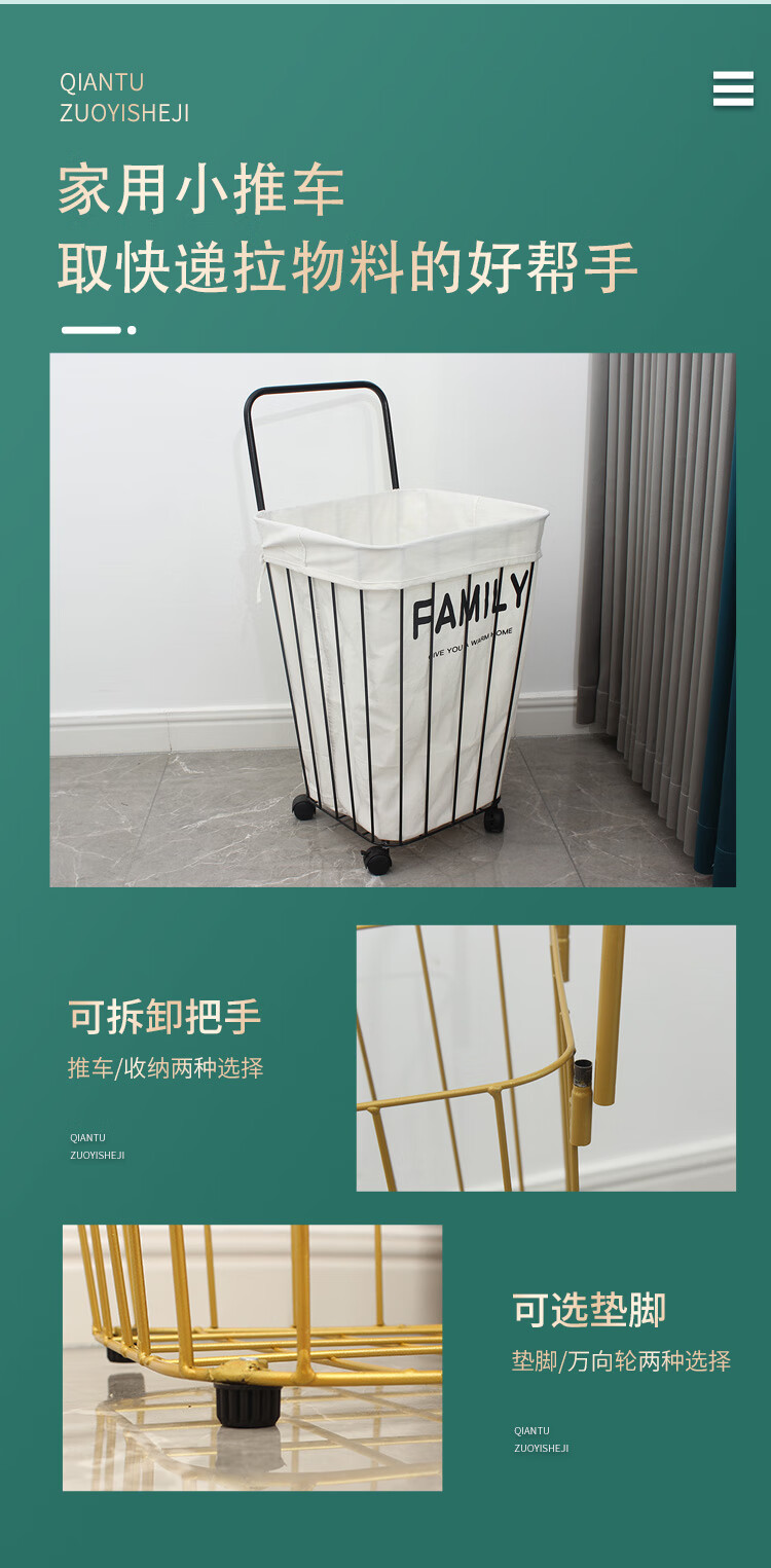 • 골드 카트 + 고무 바퀴 + 화이트 안감