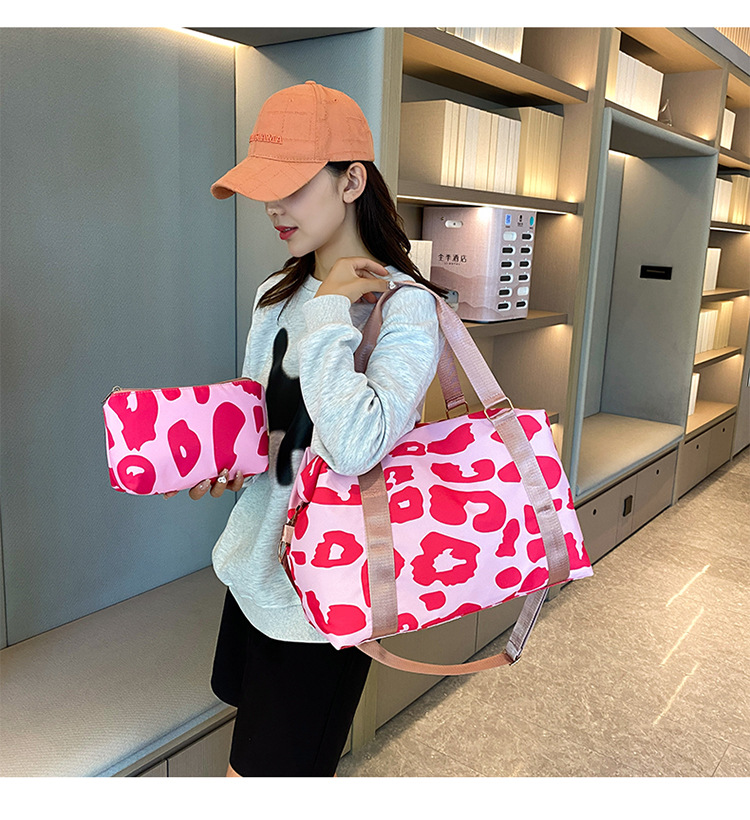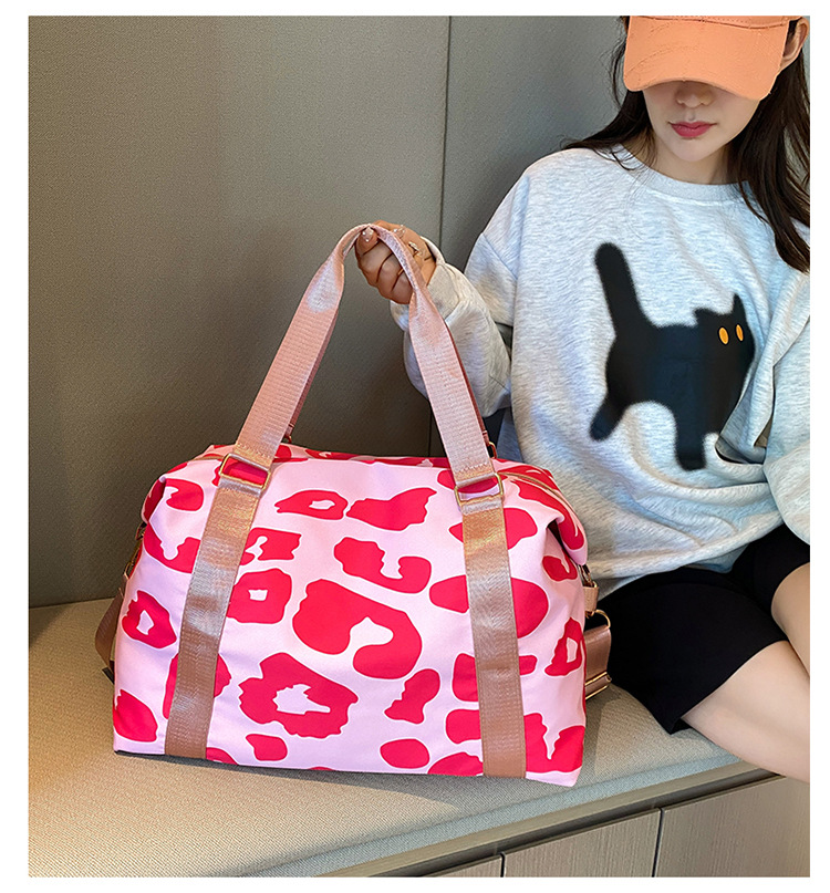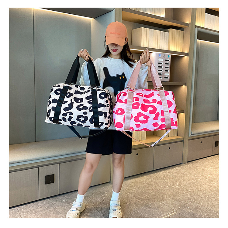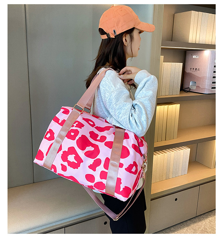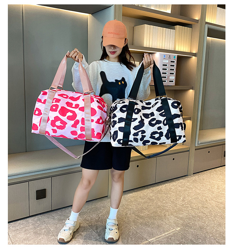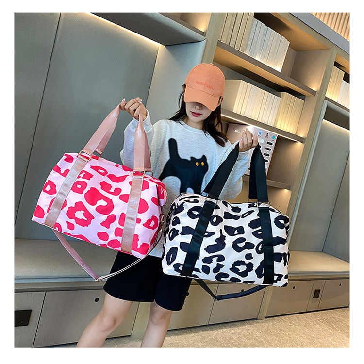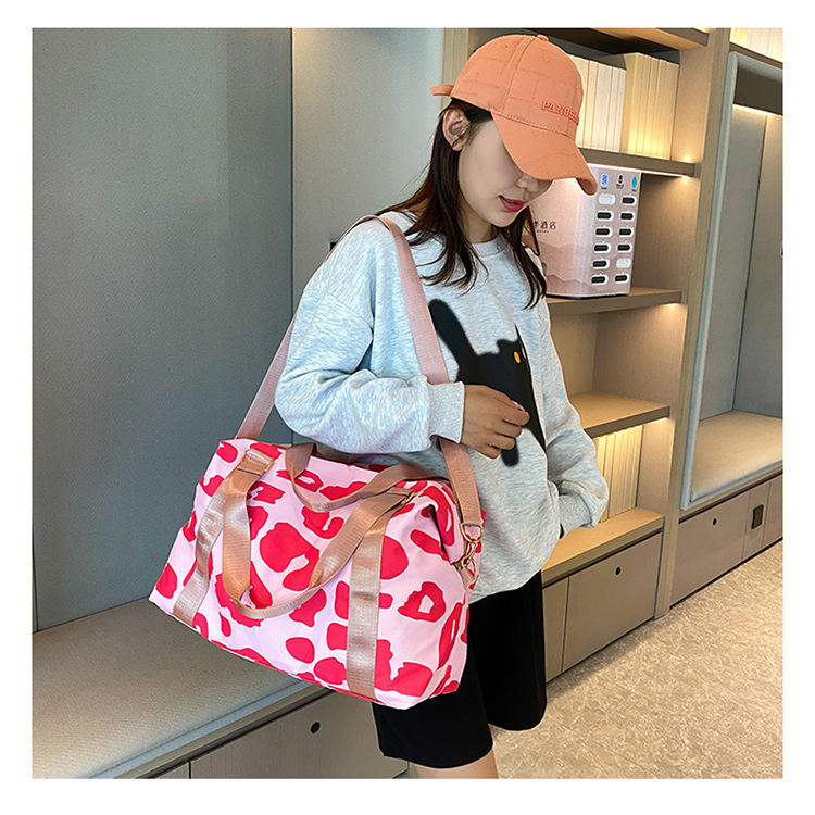여행 가방 유럽 및 미국 유제품 암소 패턴 발수성 옥스포드 천 대형 가방 여성용 휴대용 어깨 건조 및 습식 분리 체육관 가방