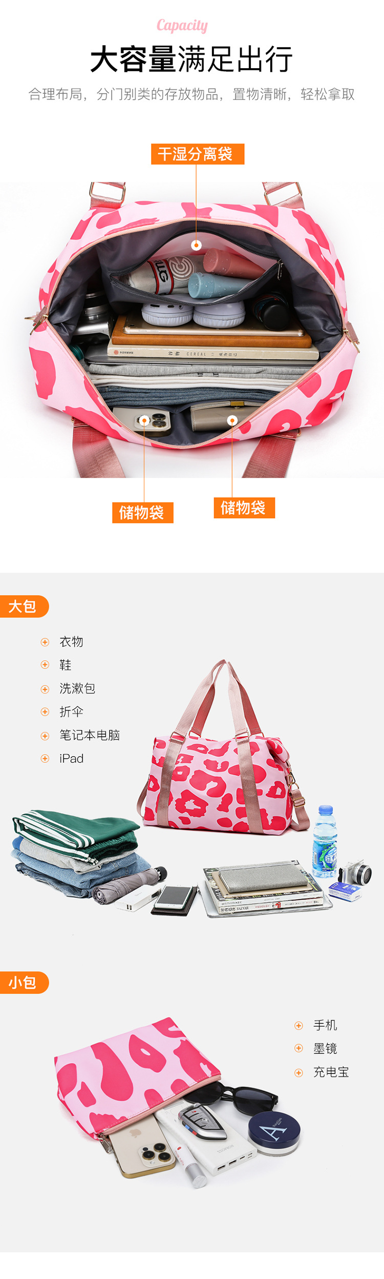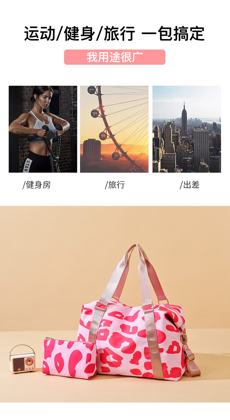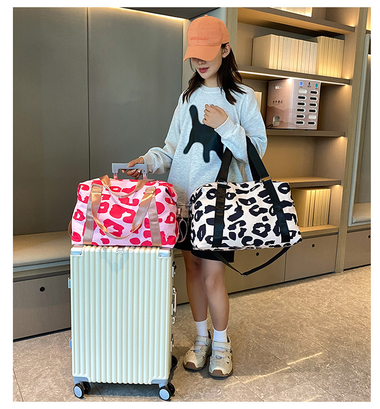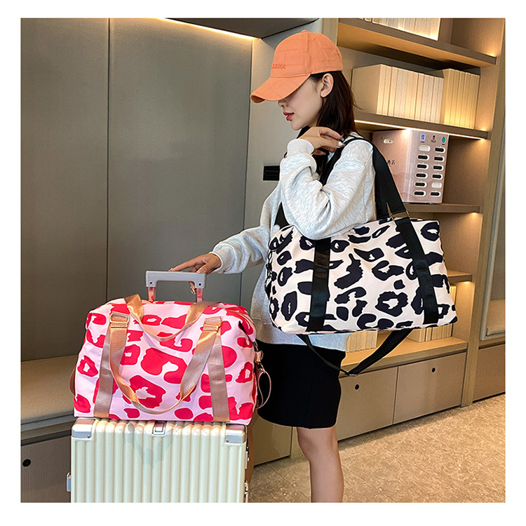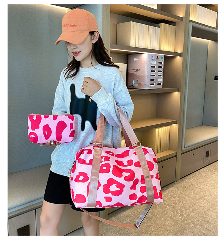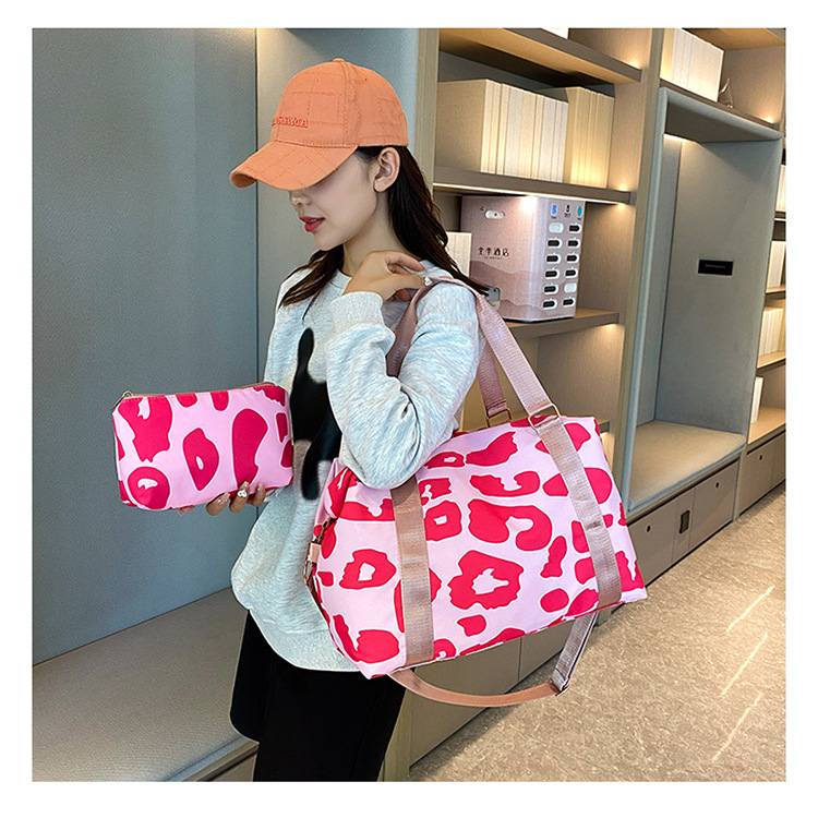 여행 가방 유럽 및 미국 유제품 암소 패턴 발수성 옥스포드 천 대형 가방 여성용 휴대용 어깨 건조 및 습식 분리 체육관 가방