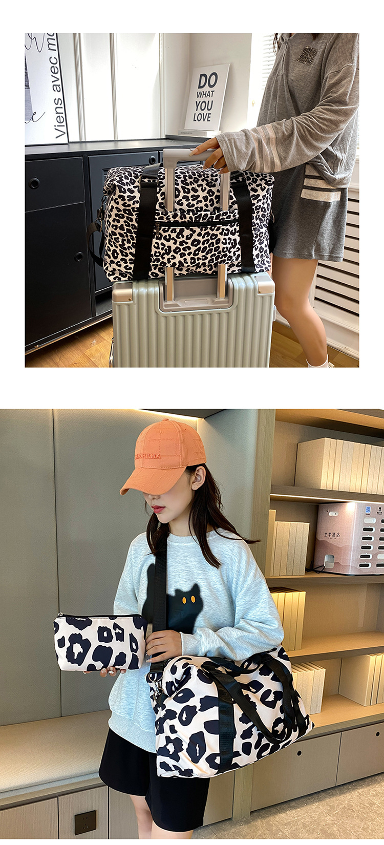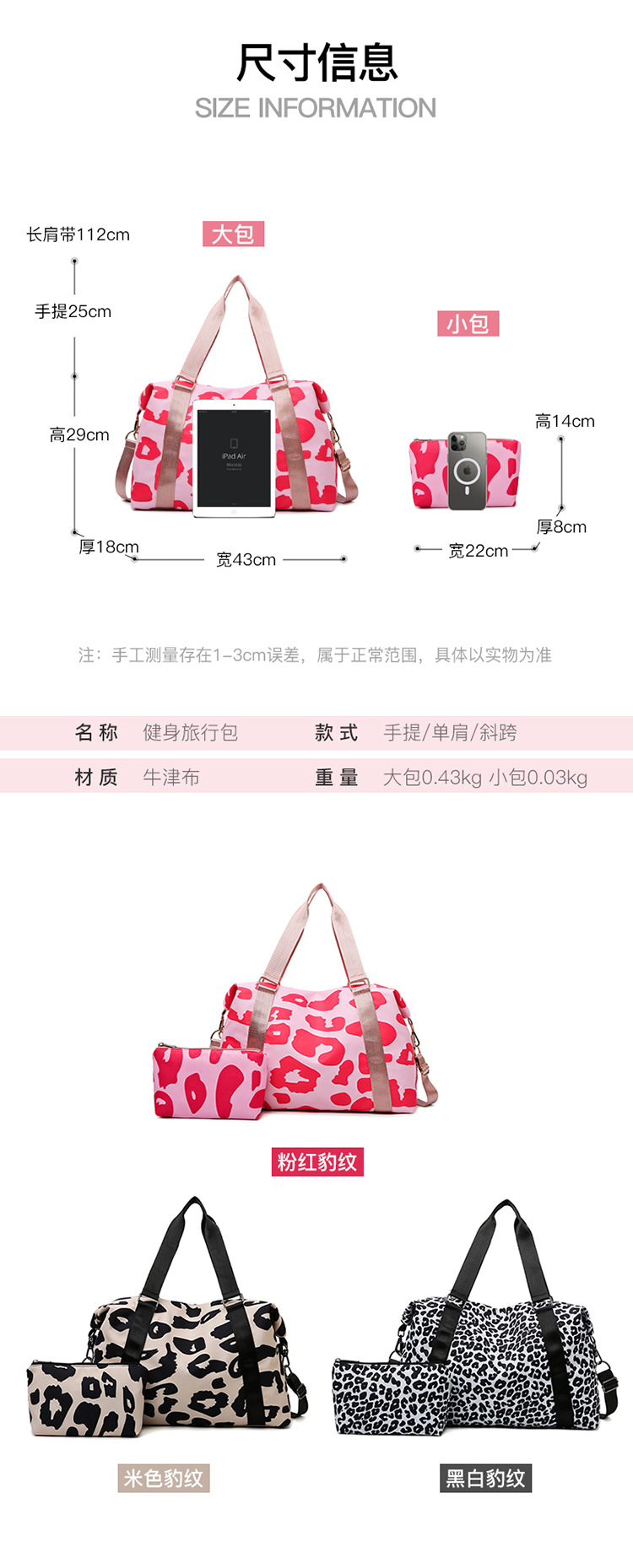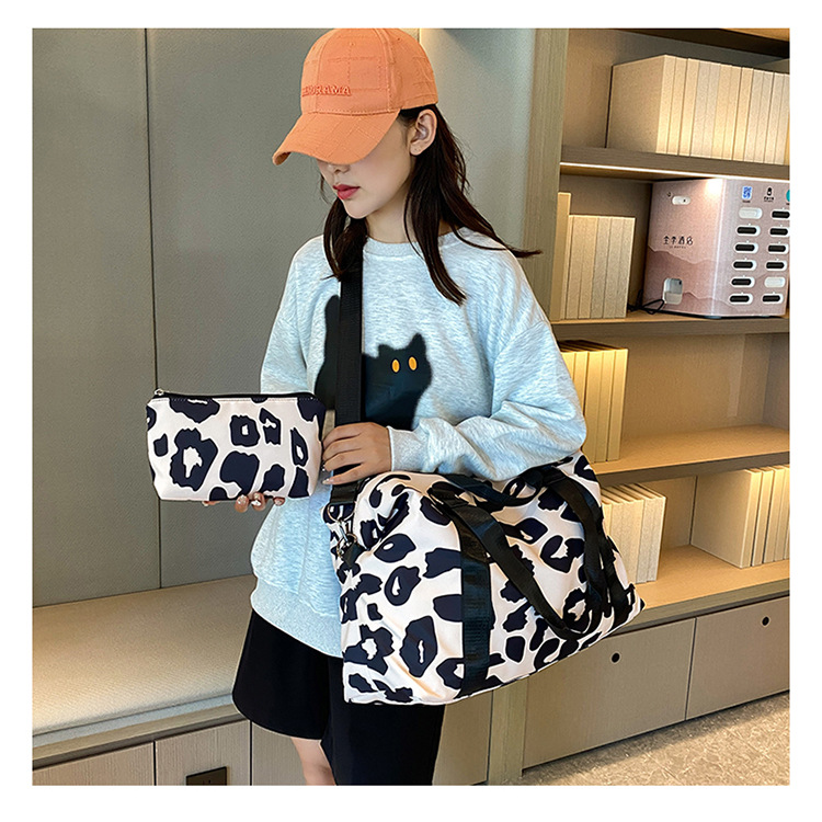 여행 가방 유럽 및 미국 유제품 암소 패턴 발수성 옥스포드 천 대형 가방 여성용 휴대용 어깨 건조 및 습식 분리 체육관 가방스토어 가기