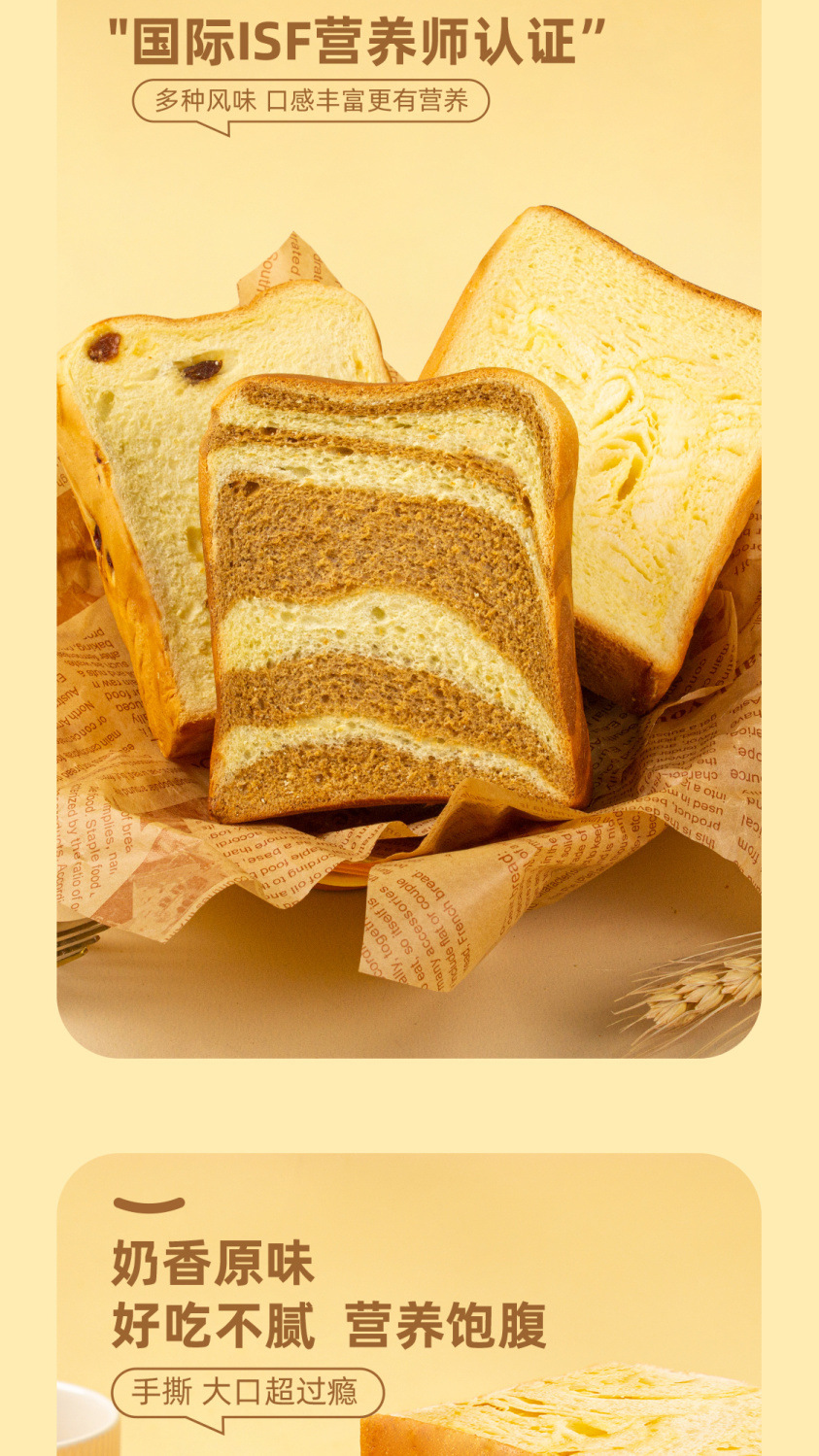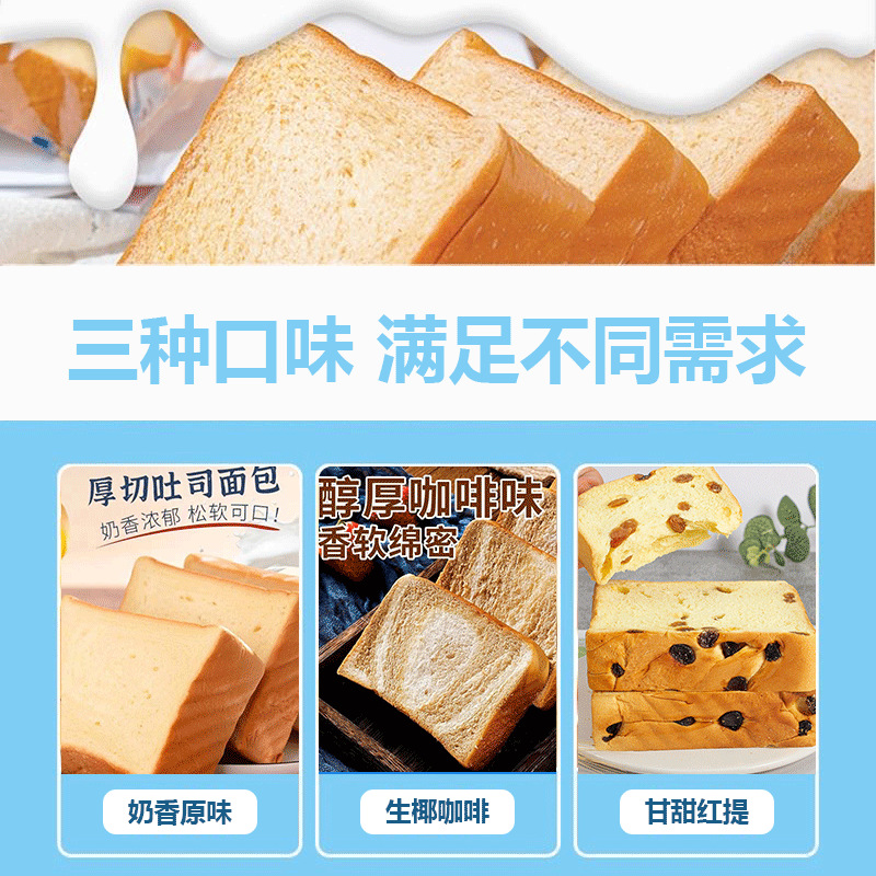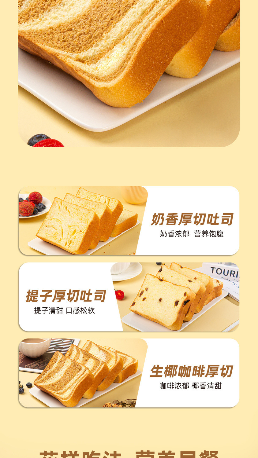 두껍게 썬 토스트빵, 매우 부드럽고 우유향이 나는 손으로 찢는 오리지널 토스트 슬라이스, 영양가 있는 아침식사용 페이스트리, 한 박스 도매, 서양식스토어 가기